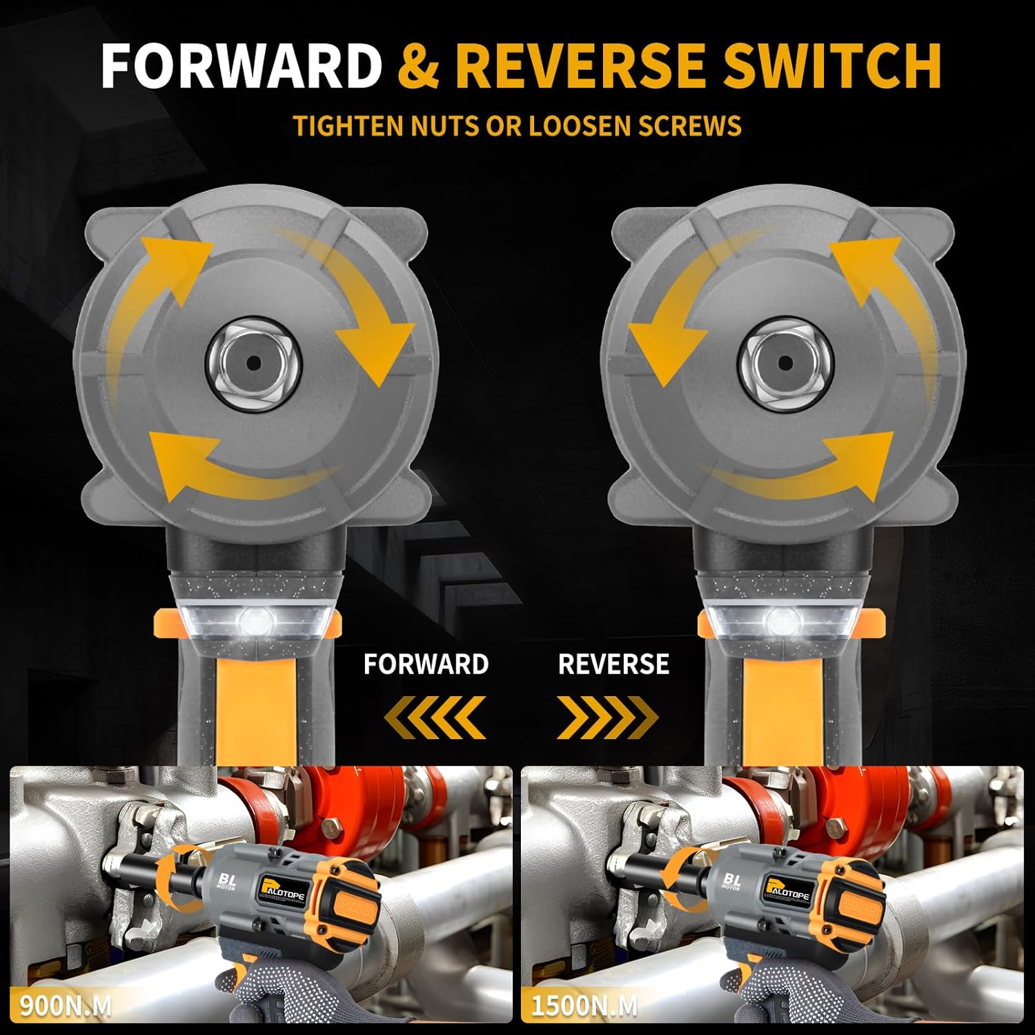 1/2" 1500N. m Cordless Impact Wrench Suitable 20V DeWalt Battery, 1105Ft-lbs High Torque Brushless Impact Gun with 5 Sockets,LED Work Light, Pistola De Impacto for Car Truck Mower(No Battery)