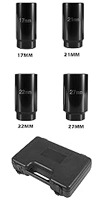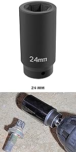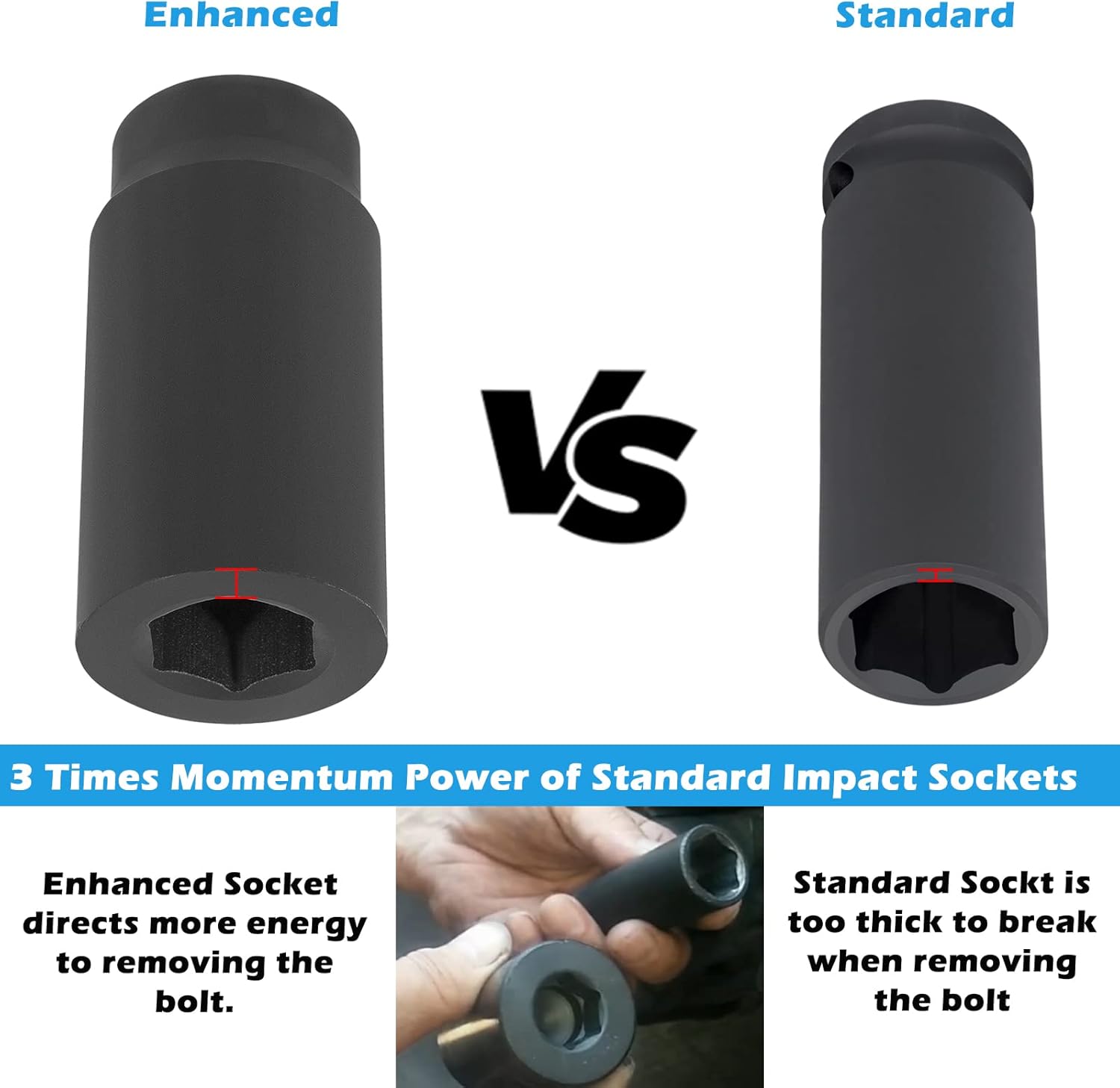 1/2" Drive Crank Bolt Socket Set, 17MM, 19MM, 21MM, 22MM, 24MM 27MM, Harmonic Balancer Socket Set, Crank Bolt Removal Tool, 3 Times Momentum Power of Standard Impact Socket Set, Deep Impact Socket Set