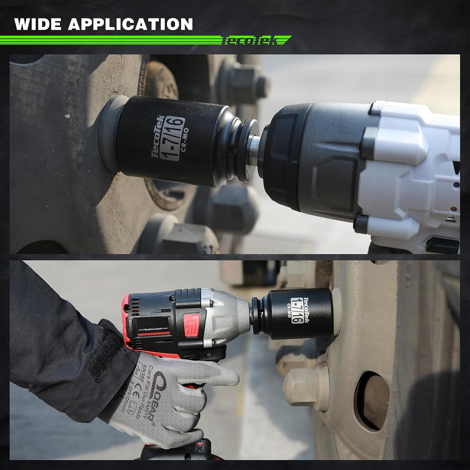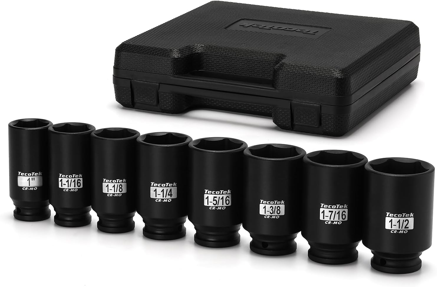 1/2" Drive Deep 6-Point Impact Socket Set, 11-Piece Standard SAE Spindle Axle Nut Impact Socket Set, Cr-Mo, 1-3/8-Inch to 2-Inch Size