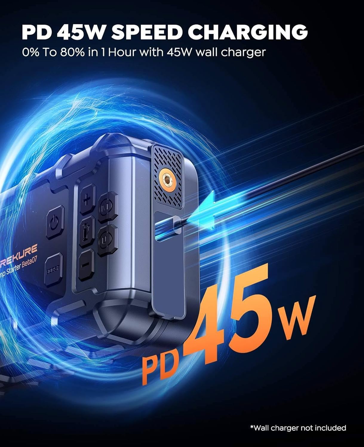 10-in-1 Car Jump Starter with Air Compressor 8000A 160PSI 45W Battery Charger, Jump Starter Jump Box (All Gas 12L Diesel), Car Jumper Starter Portable Jumper Cables, Gloves, Lights