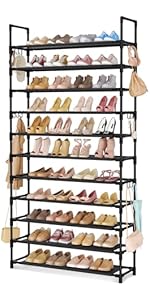 LANTEFUL Tall Narrow Shoe Rack for Entryway, 10-Tier Sturdy Metal Shoe Shelf ...