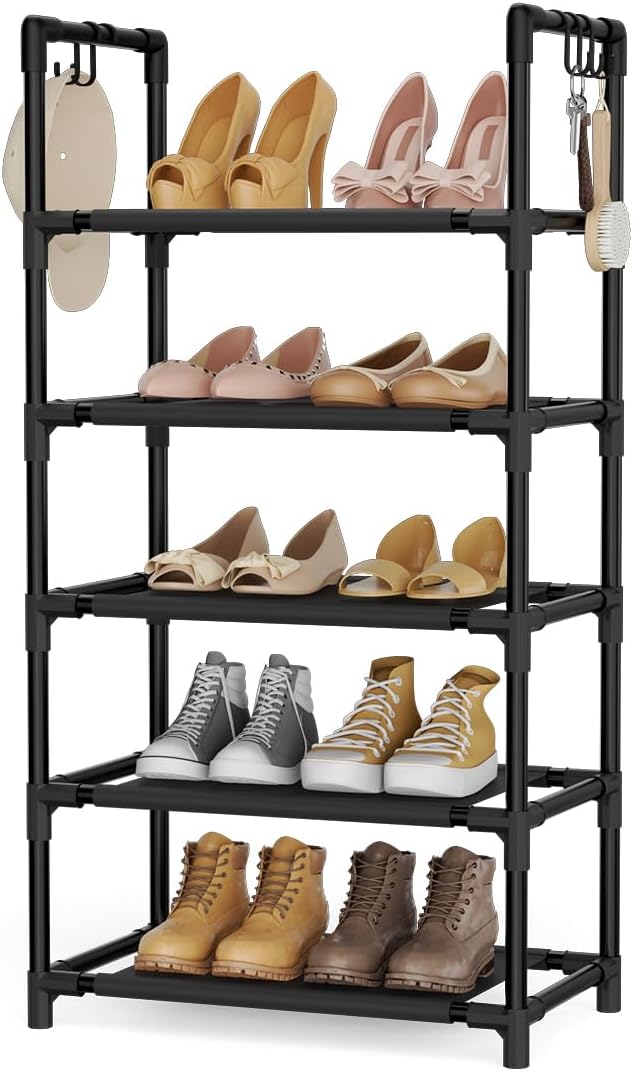 - Our narrow shoe rack comes with 5 multi-purpose hooks, you can hang many things on it.