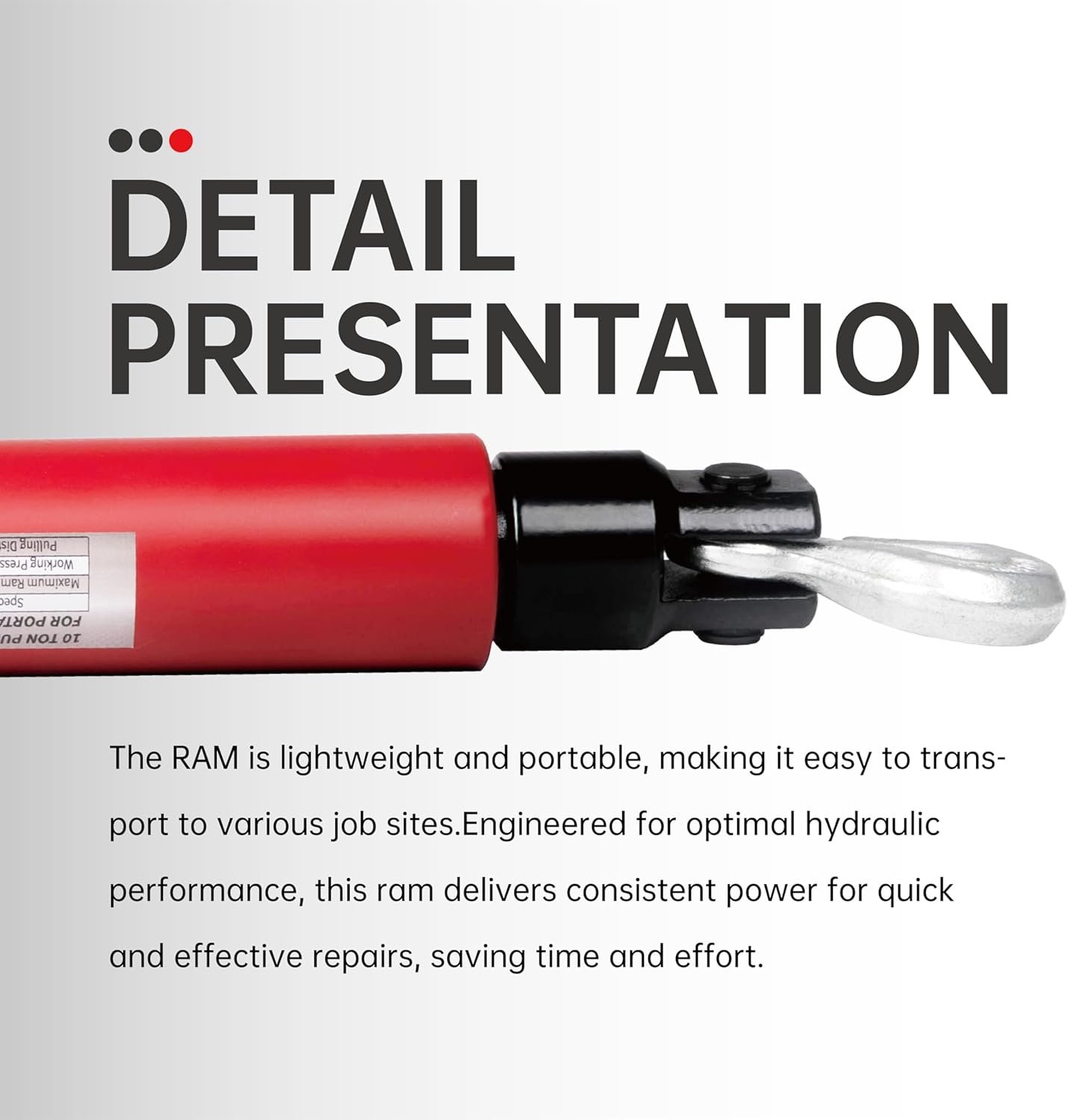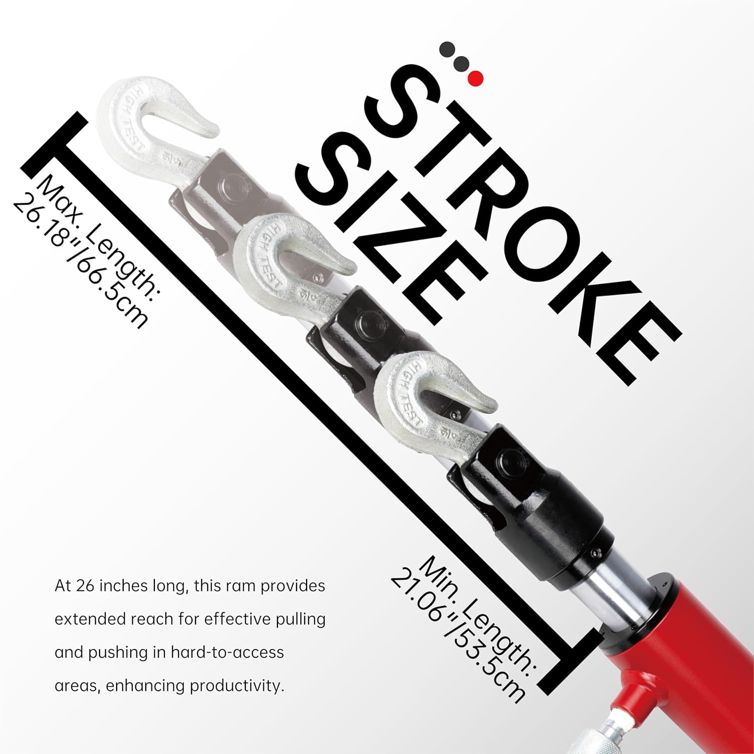 10-Ton 26'' Pull Back Ram for Porta Power Body Shop Frame Tools with Rotating Hook, Red