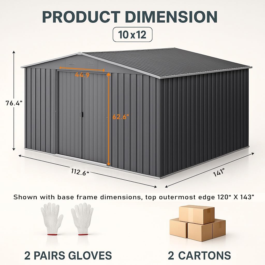 10 x 12 FT Outdoor Storage Shed, Metal Waterproof Storage Shed Steel Utility Garden Tool Shed with Door & Lock Outdoor Storage for Garden Patio Lawn Poolside Black
