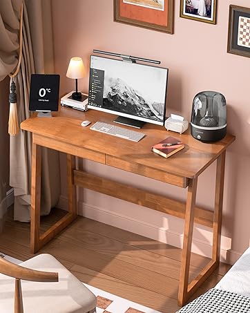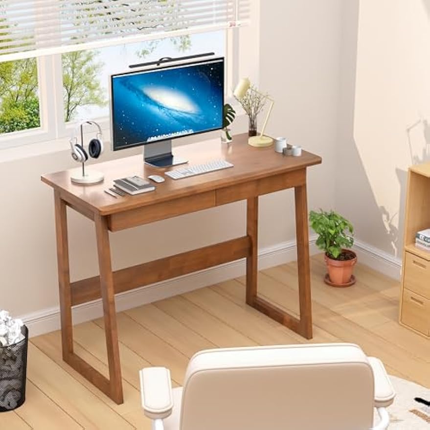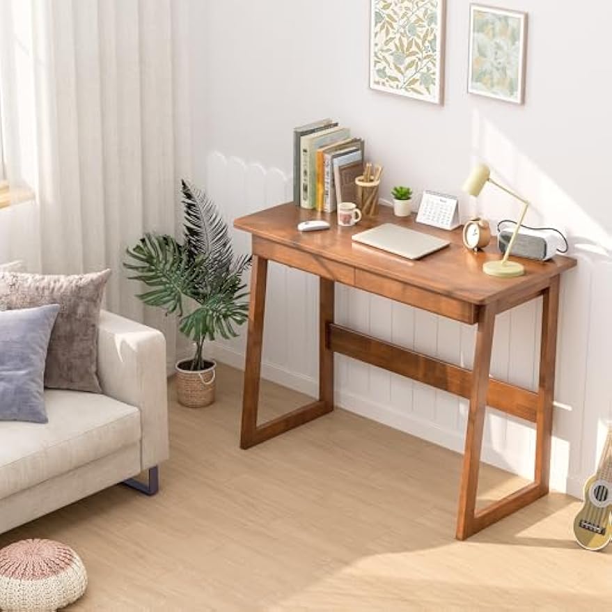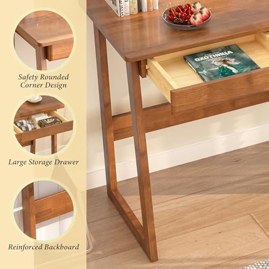 100% Solid Wood Writing Desk - Mid Century Modern Desk, Home Office Desks with Drawers, Walnut Vintage Desks, Laptop Computer Work Study Table for Bedroom, Living Room & Office