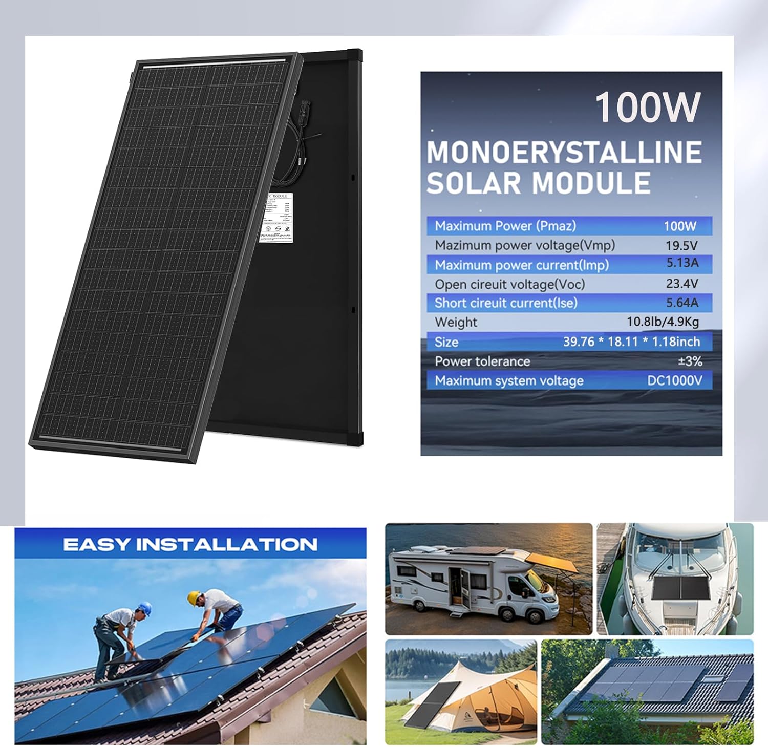 100 Watt Solar Panel Kit 100 Watt 12 Volt Monocrystalline Solar Panels 10A Solar Charge Controller, Solar Cables, Z-Mounting Bracket for RV Rooftop Marine Boat Trailer Camping Off-Grid Application