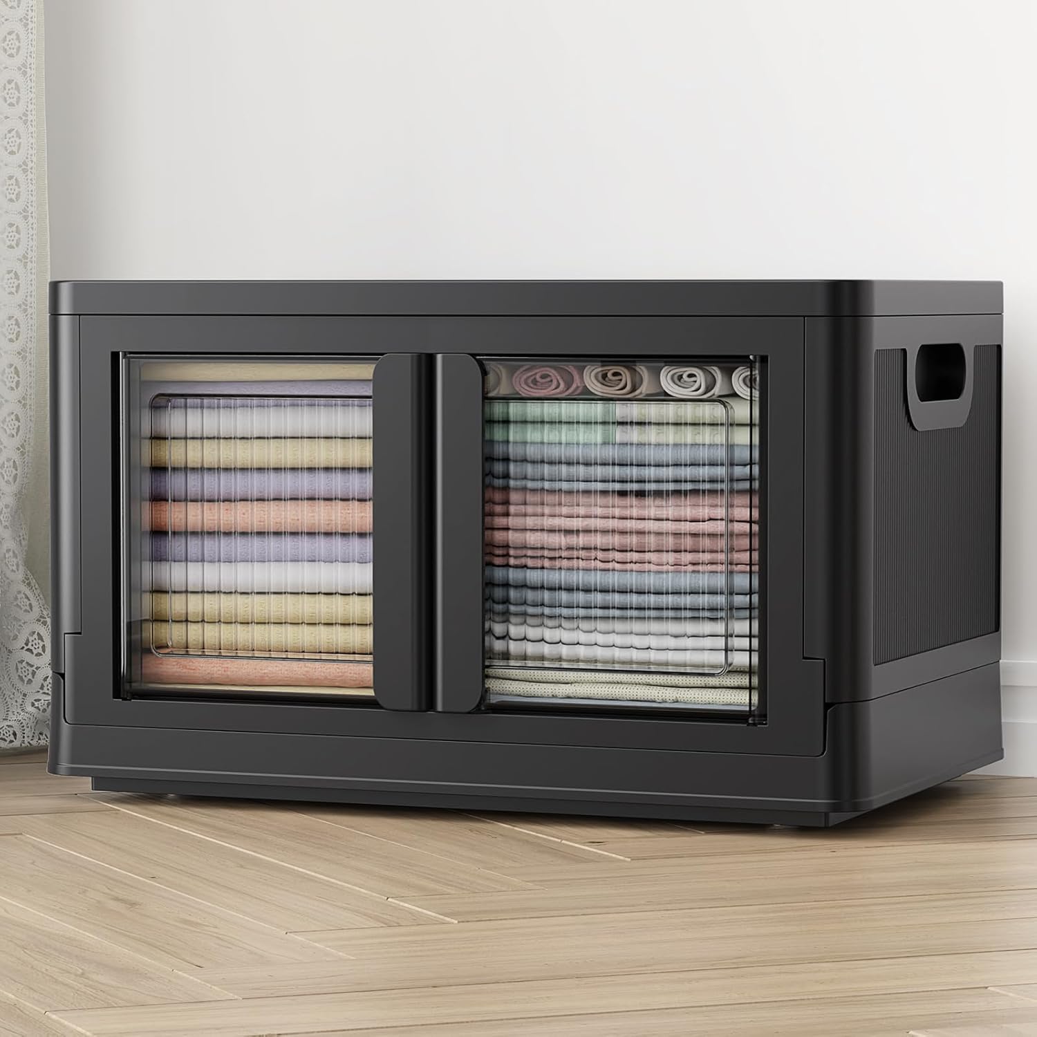100QT Stackable Storage Bins With Lids, 25Gal Plastic Boxes With Wheels and Doors, Heavy-Duty Folding Closet Organizers, Cabinet for Closet Home Dorm, 1 Pack Black