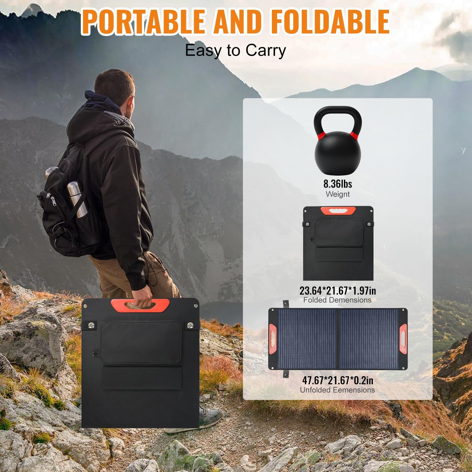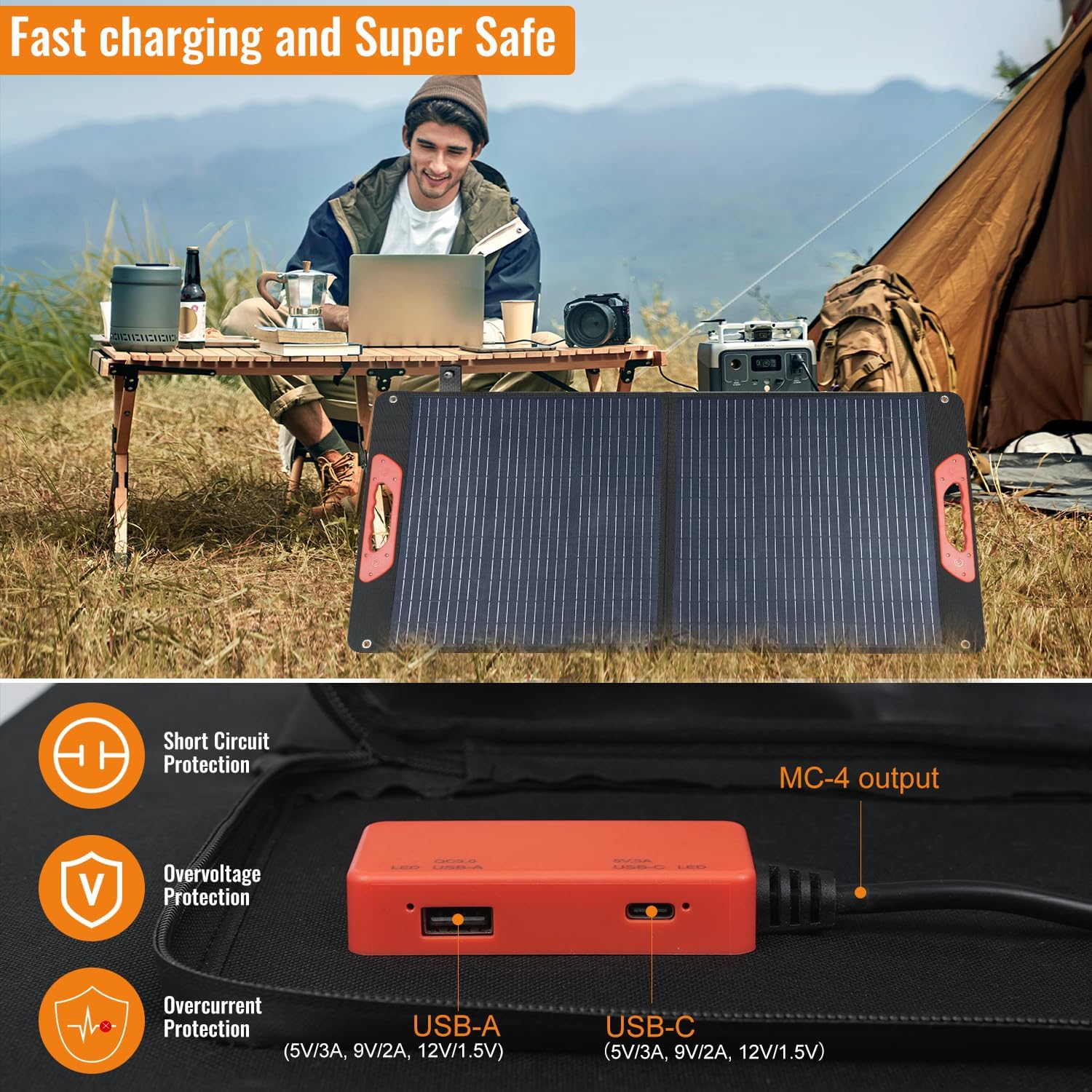 100W Foldable Solar Panel - Charger for Power Stations | Monocrystalline 23.5% High Efficiency QC3.0 USB-A/USB-C Output | IP65 Waterproof | Portable for Camping, RV, Emergency Blackout