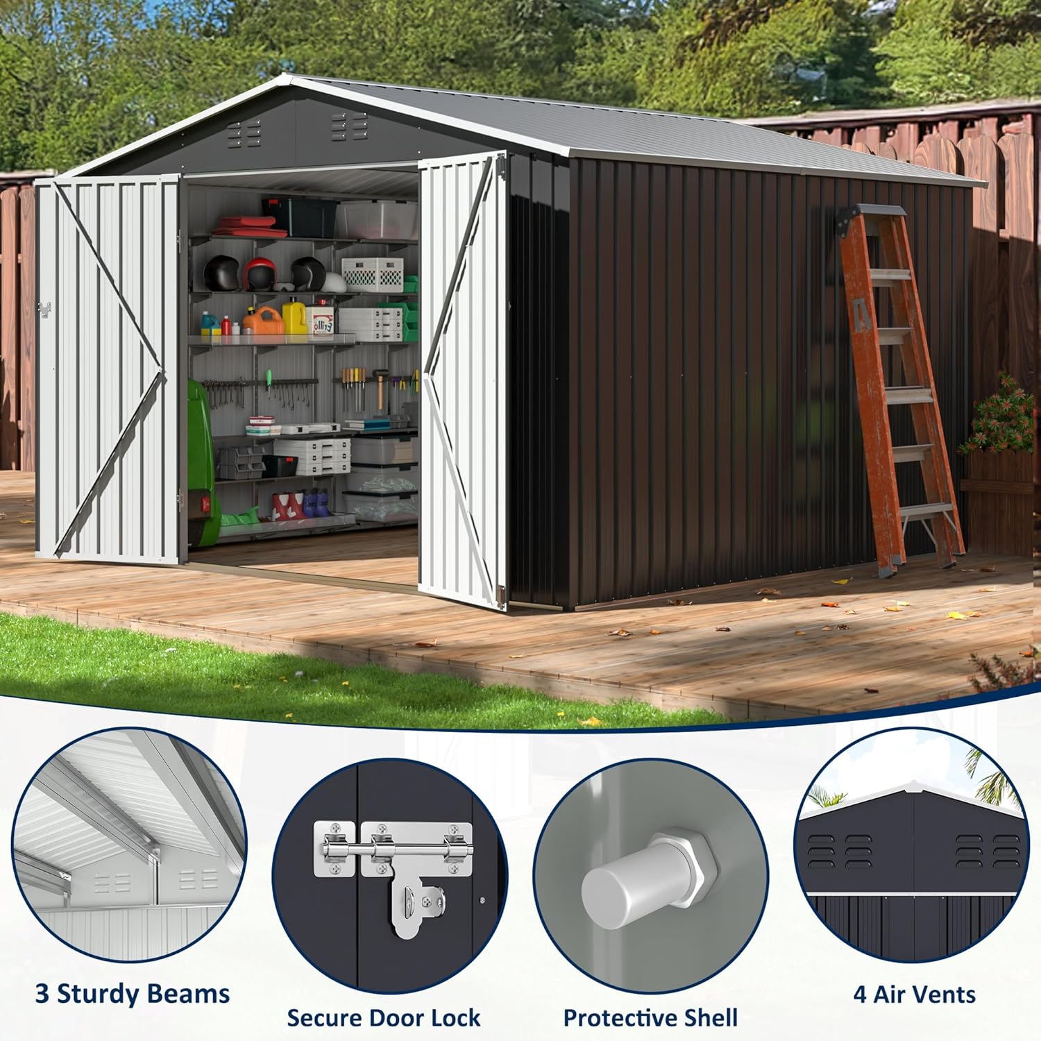 10x10 FT Outdoor Storage Shed, Garden Shed with Updated Frame Structure and Lockable Doors, Metal Tool Sheds for Backyard Garden Patio Lawn, Grey