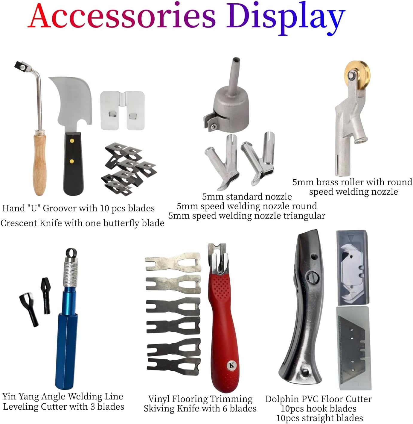 110V 1600W Hot Air Plastic Welder Hand Held Heat PVC Vinyl Linoleum Flooring Hot Air Welding Gun Tools Kit (Set 1)