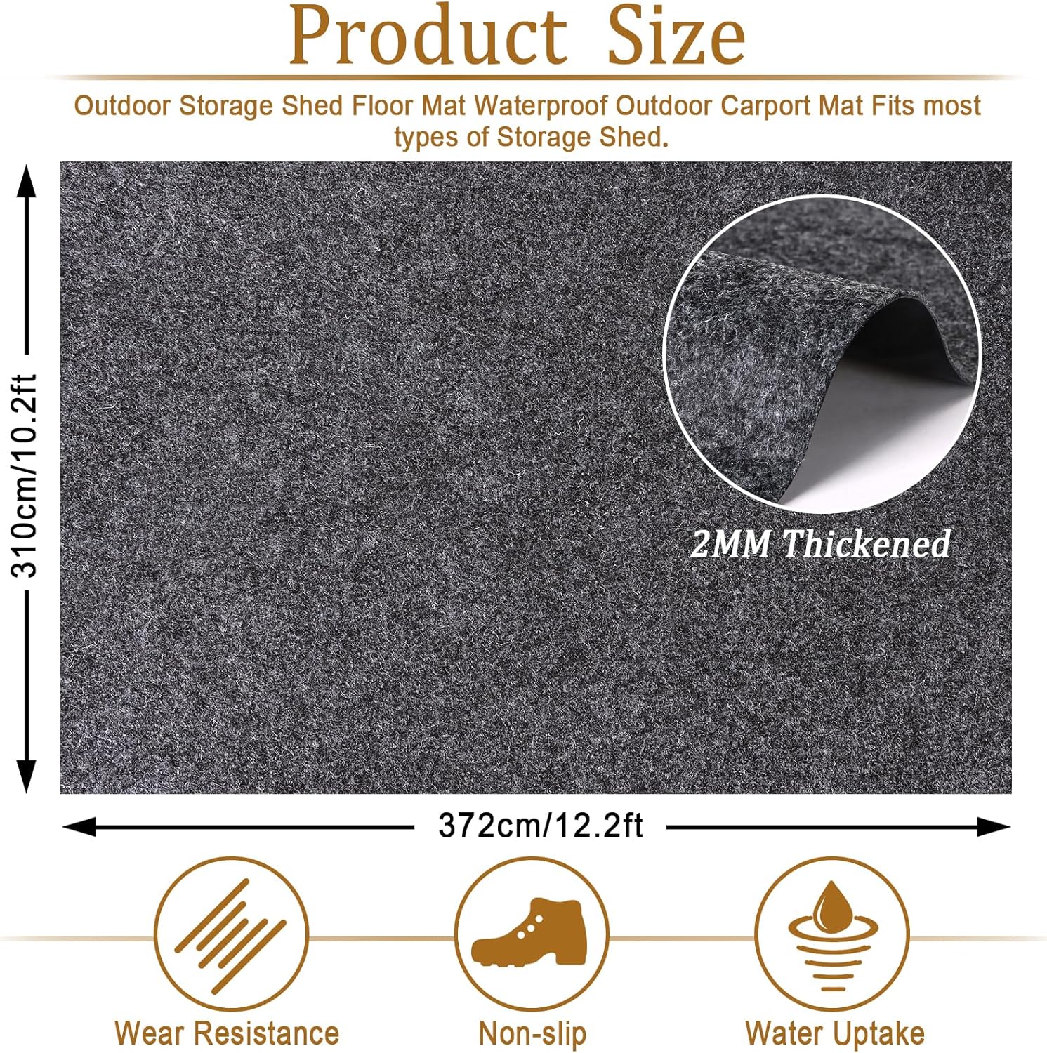 12.2 x 10.2 Ft Outdoor Storage Shed Floor Mat Waterproof, 500g/㎡ Thickened Washable Furniture Dustproof Anti-Slip Pad for Patio, Moto, Car for Protect Flooring from Wear, Carport Dustproof Oil Mat