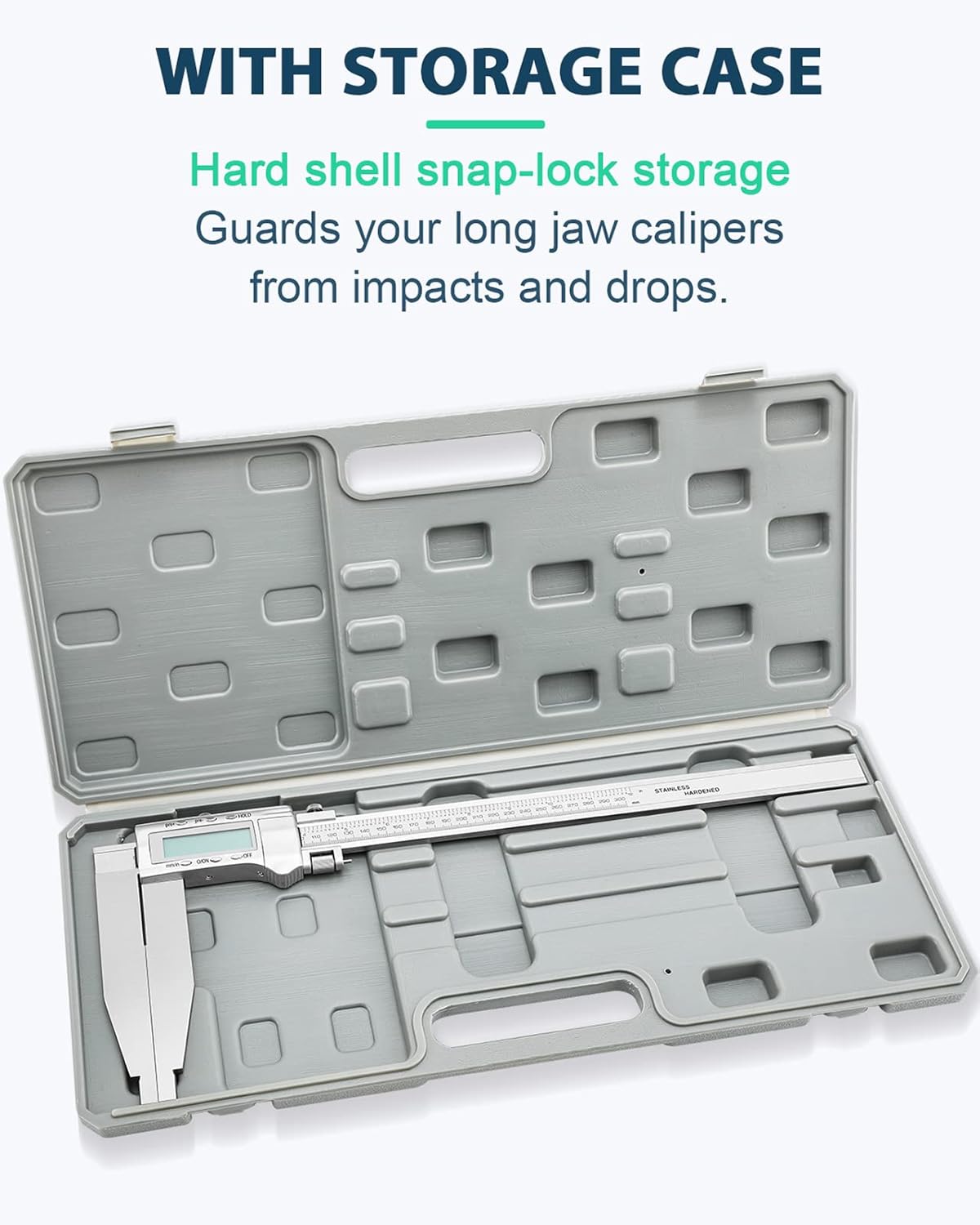 12 Inch Digital Caliper Long Jaw Caliper with 6" Jaw Depth Calipers Measuring Tool All-Metal Frame Large LCD Screen 0.0005"/ 0.01mm Resolution (12"/ 300mm)