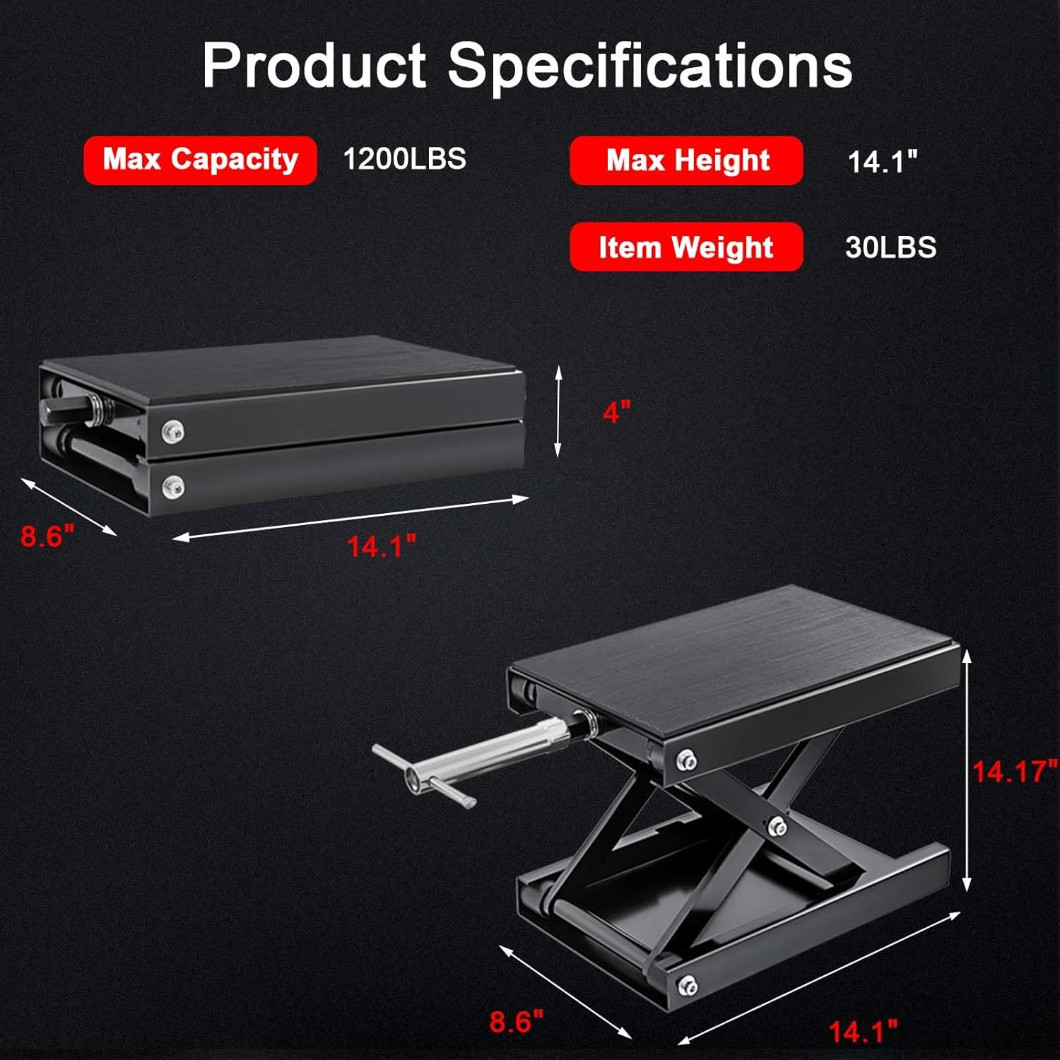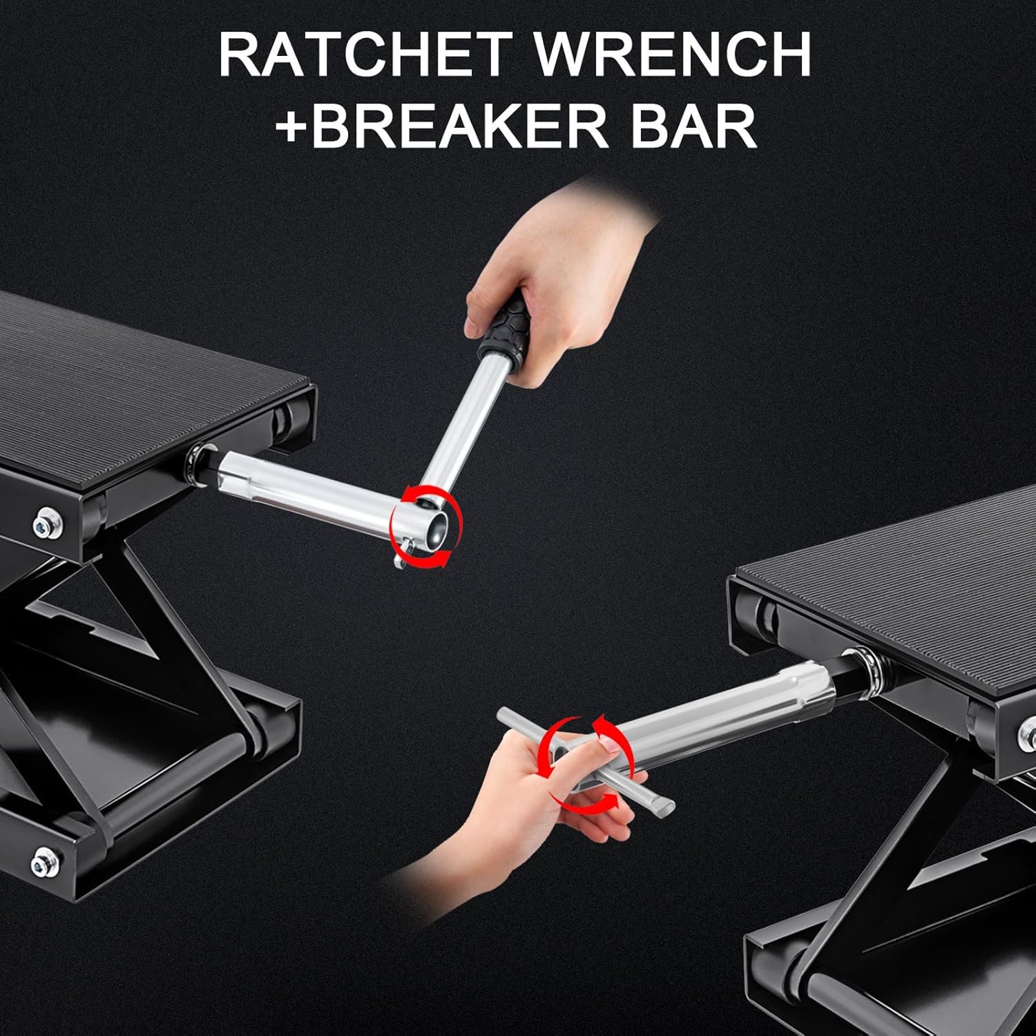 1200 LBS Motorcycle Jack, Motorcycle Lift Stand for Dirt Bike ATV,Scissor Jack with Crank Handle and Breaker Bar