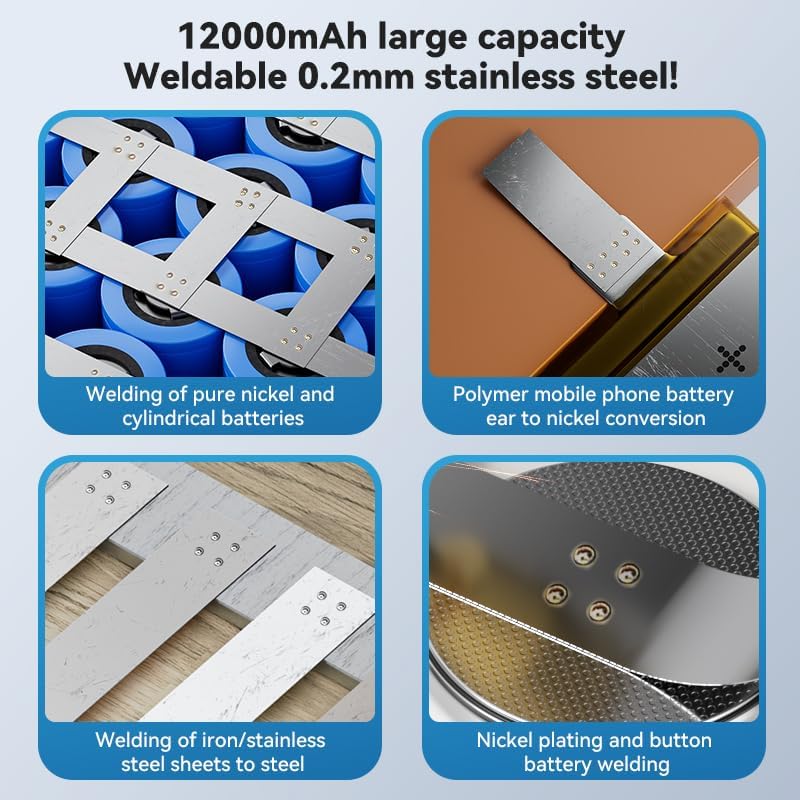 12000mAh Battery Spot Welder, 2'' LCD Screen Upgraded Enhanced 199 Gears Adjustable Portable Mini Spot Welder with Nickel Sheet & 4X4 Holder For Making Battery Packs (Black-LCD 12000mAH)