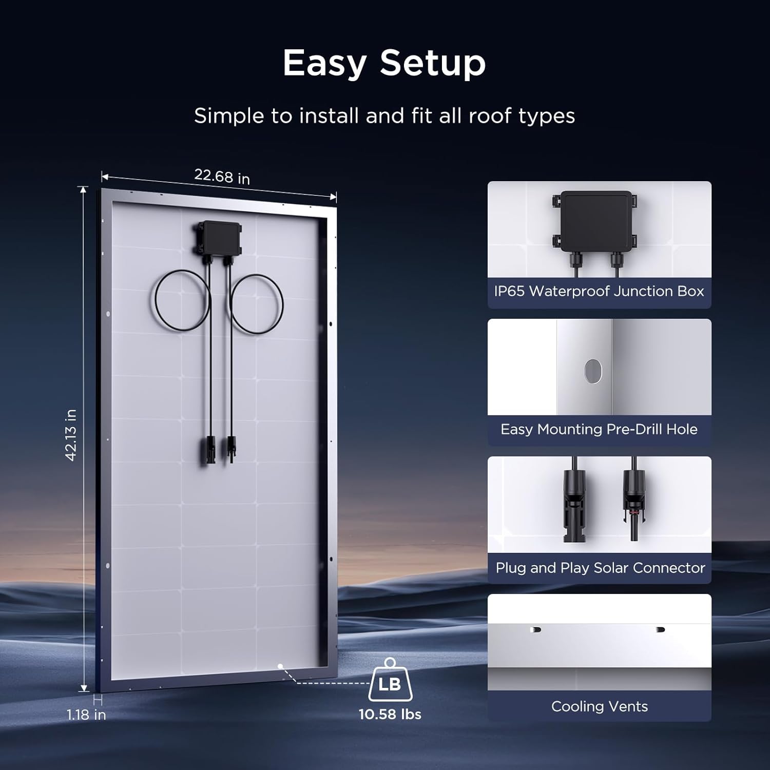 12V 100W Solar Panel,100 Watt Solar Panel with Over-Power Design,High Efficiency Monocrystalline PV Modules,Ideal for RV, Trailer, Camper, Marine, Rooftop,Home, Farm, Off-Grid (1PCS 100w)