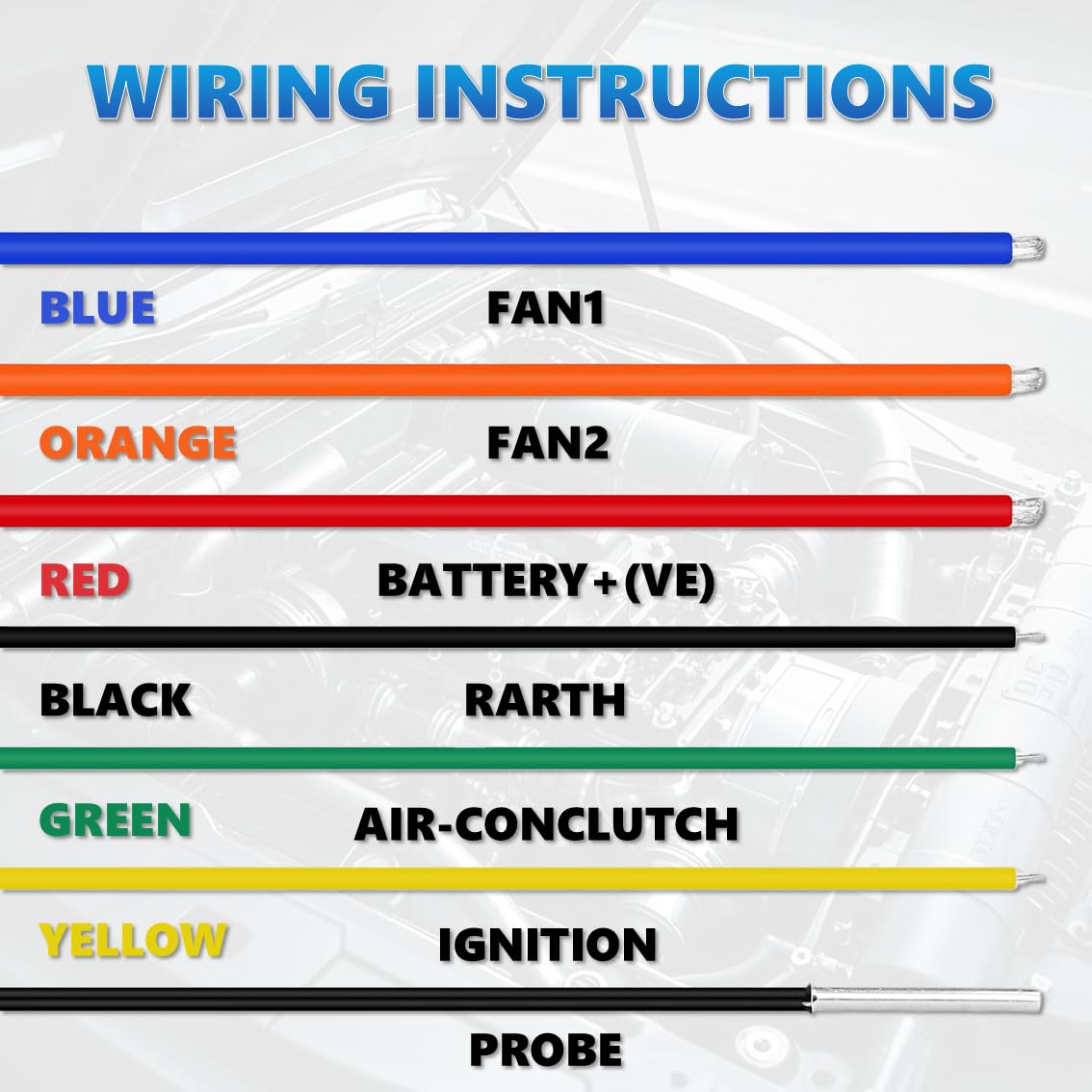 12V/24V Digital Electric Radiator Fan Controller Switch Kit with Adjustable Temperature Range (104-230°F), LED Real-Time Display, Thermatic Dual Fan Relay Kit for Automotive Systems (Part #0444)