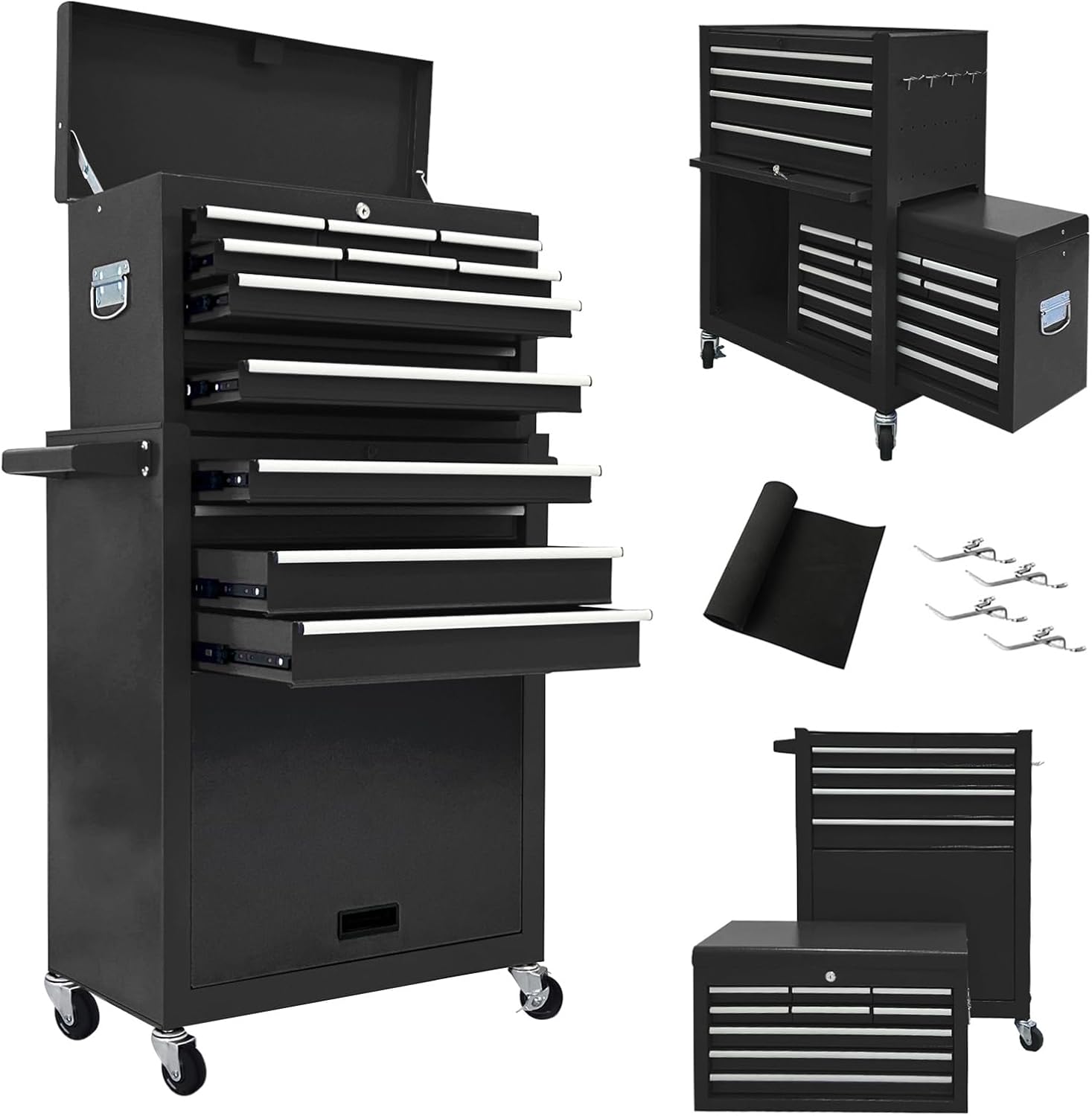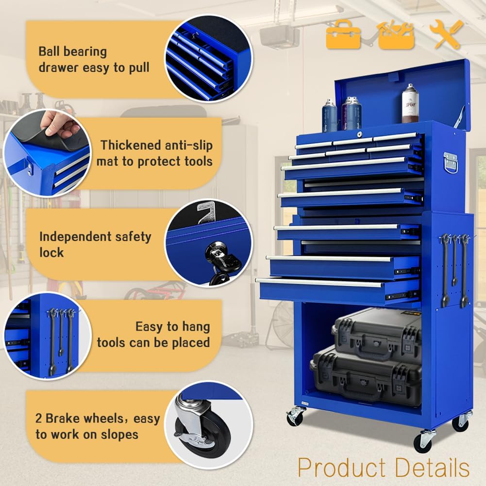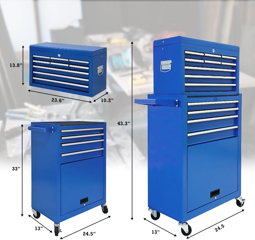 13 Drawer Rolling Tool Chest with Wheels, 2 in 1 Detachable Tool Chest with Drawers, Large Tool Box with Lock, Metal Tool Cabinet for Garage Workshop(Red)