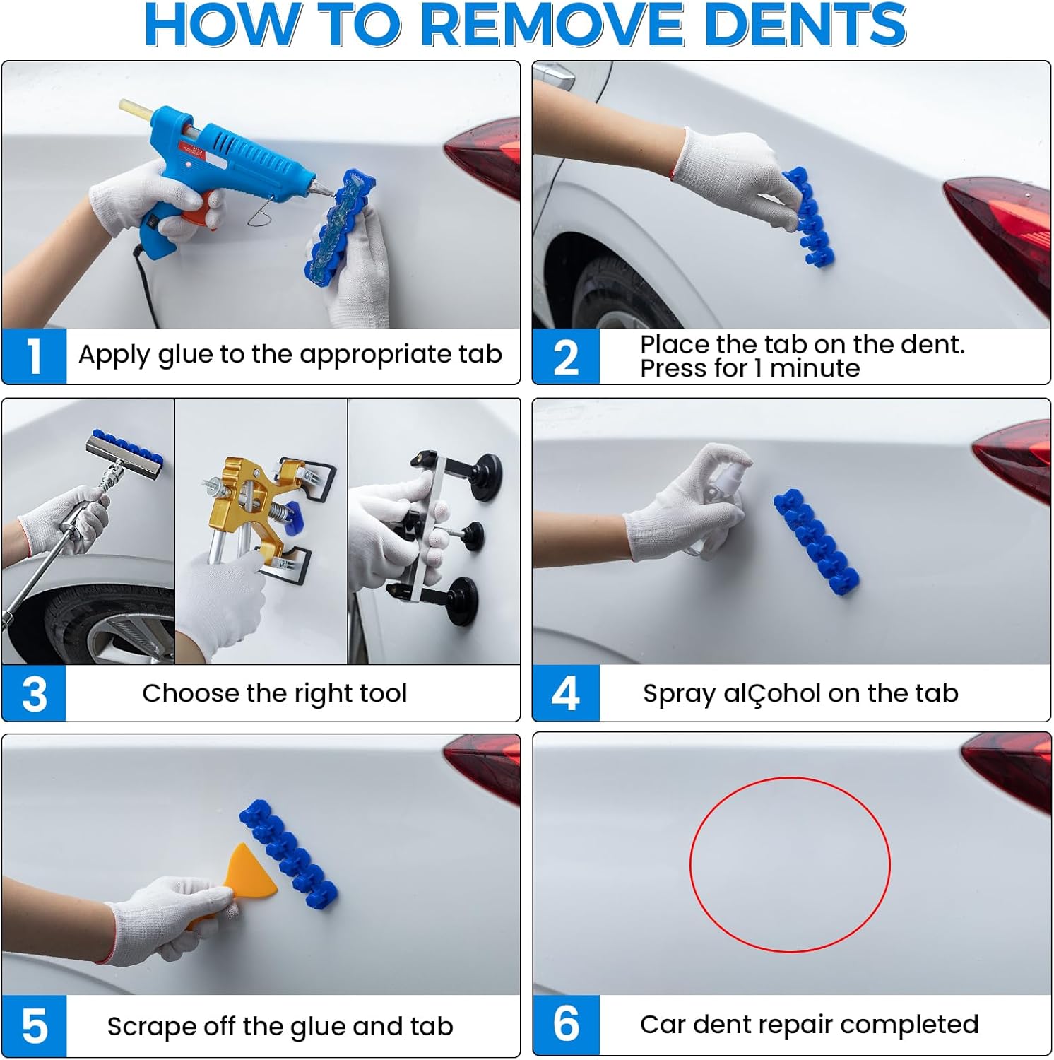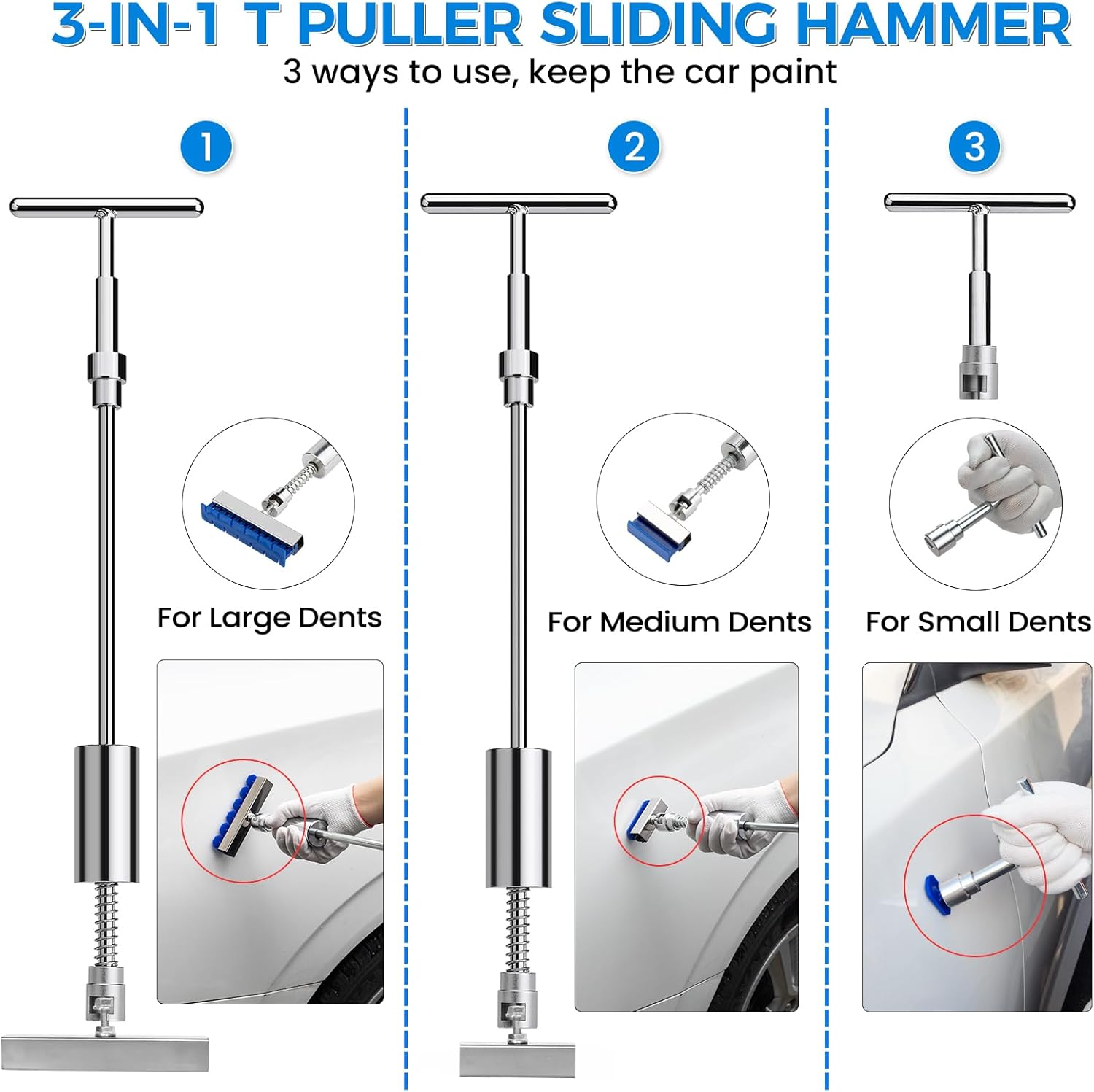 134Pcs Car Dent Puller Kit, Paintless Dent Removal Tool Kit with 3 in 1 T-bar Slide Hammer & Bridge Puller & Golden Lifter, Dent Repair Kit for Car Hail Damage Large Small Dent Fast Removal