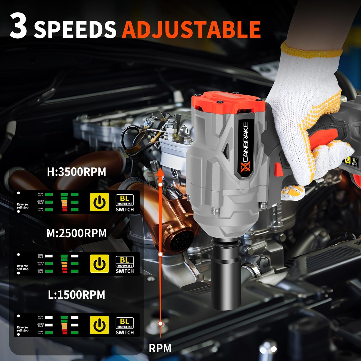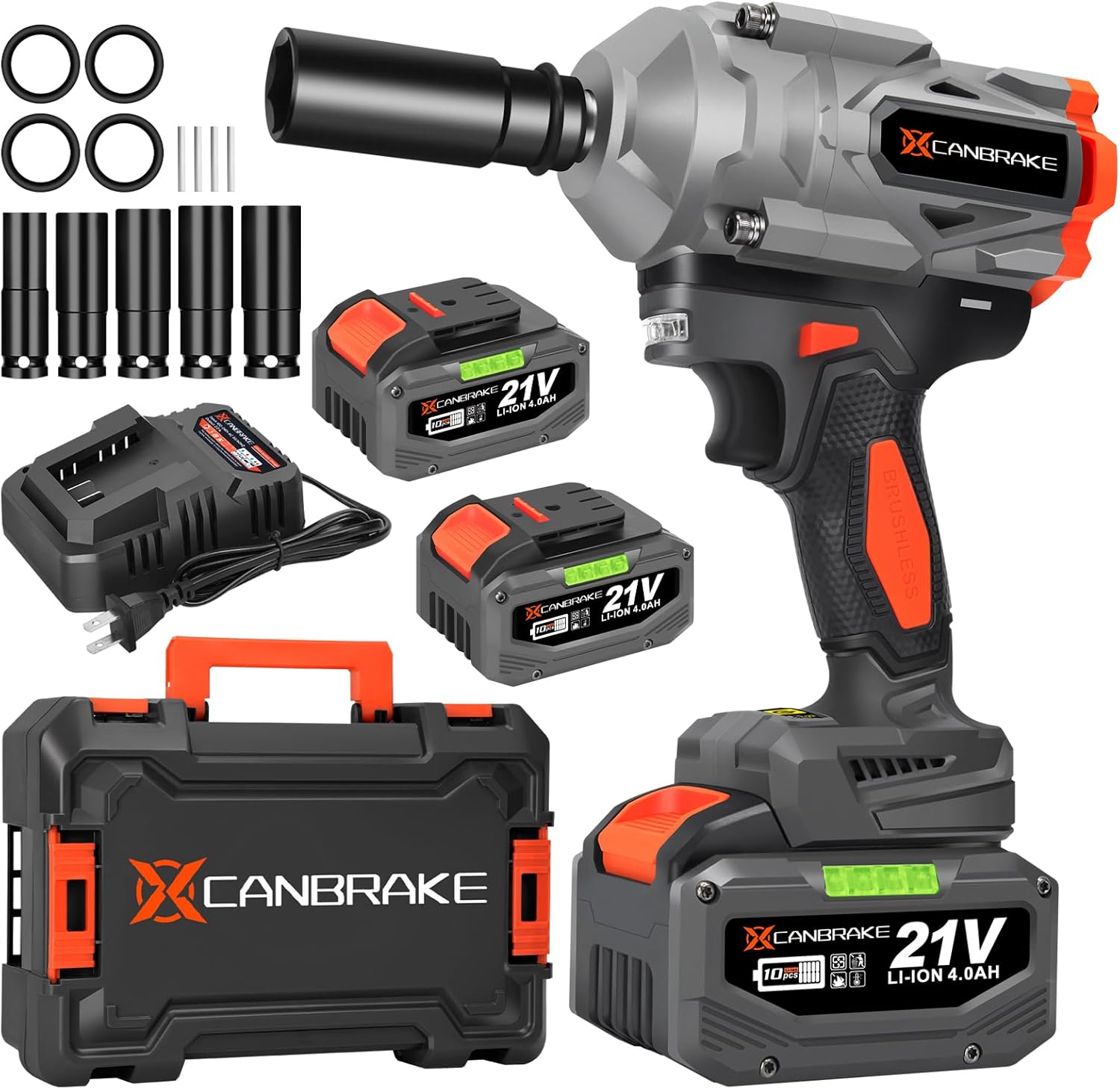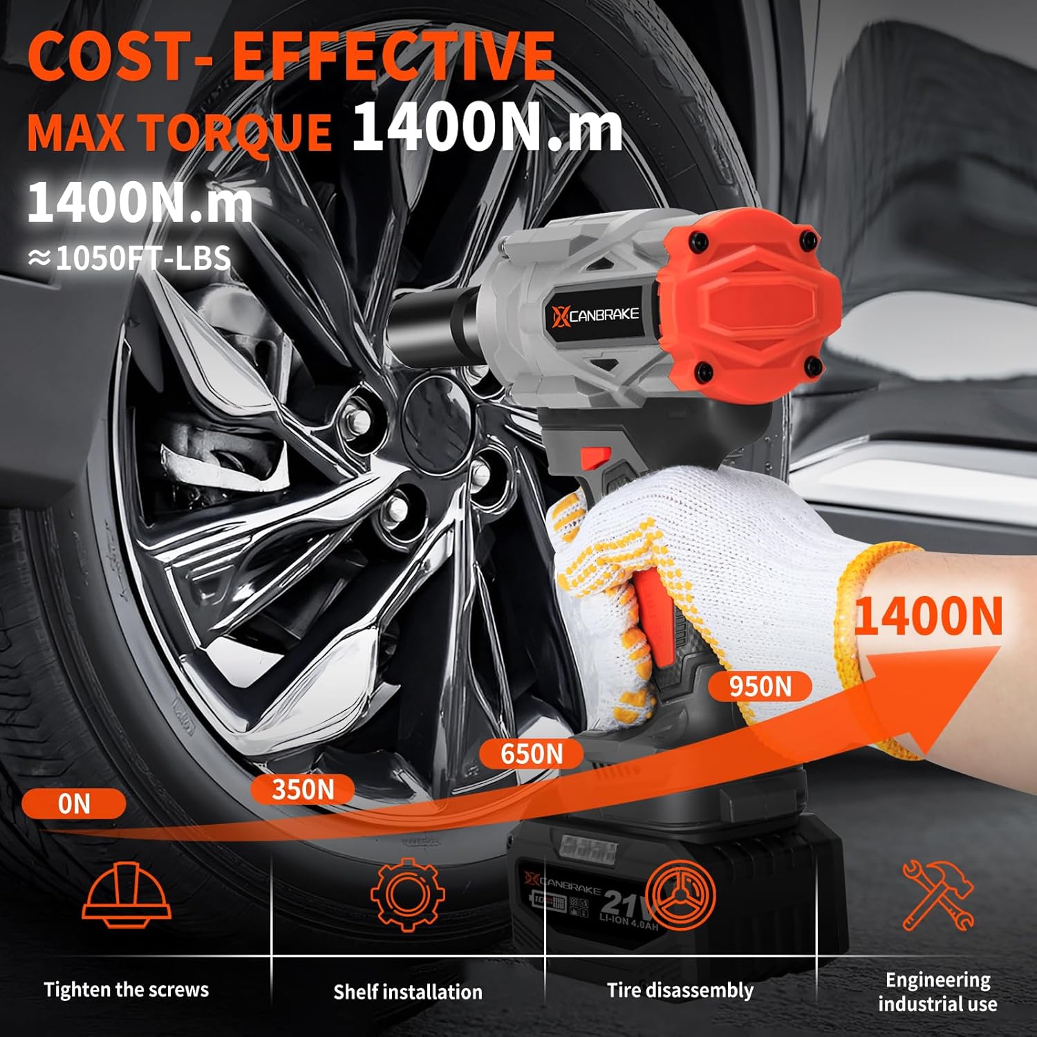 1400N.m Cordless Impact Wrench, 1/2" 21V Heavy Duty Brushless Impact Gun with 2 x 4.0Ah Battery & 5 Sockets, 3 Variable Speeds, 740ft-lbs High Torque Electric Pistola Llave de Impacto for Car Truck Tires Mover Powerful Impact Wrench for High Torque Jobs - This electric power impact wrench is a well-deserved performance beast, with its peak torque easily reaching 1,000 N.m. It only takes 0.5-1 seconds to remove the screw. Whether it is a home DIY project, car repair, agricultural equipment, or heavy-duty pickup truck, it can be done effortlessly