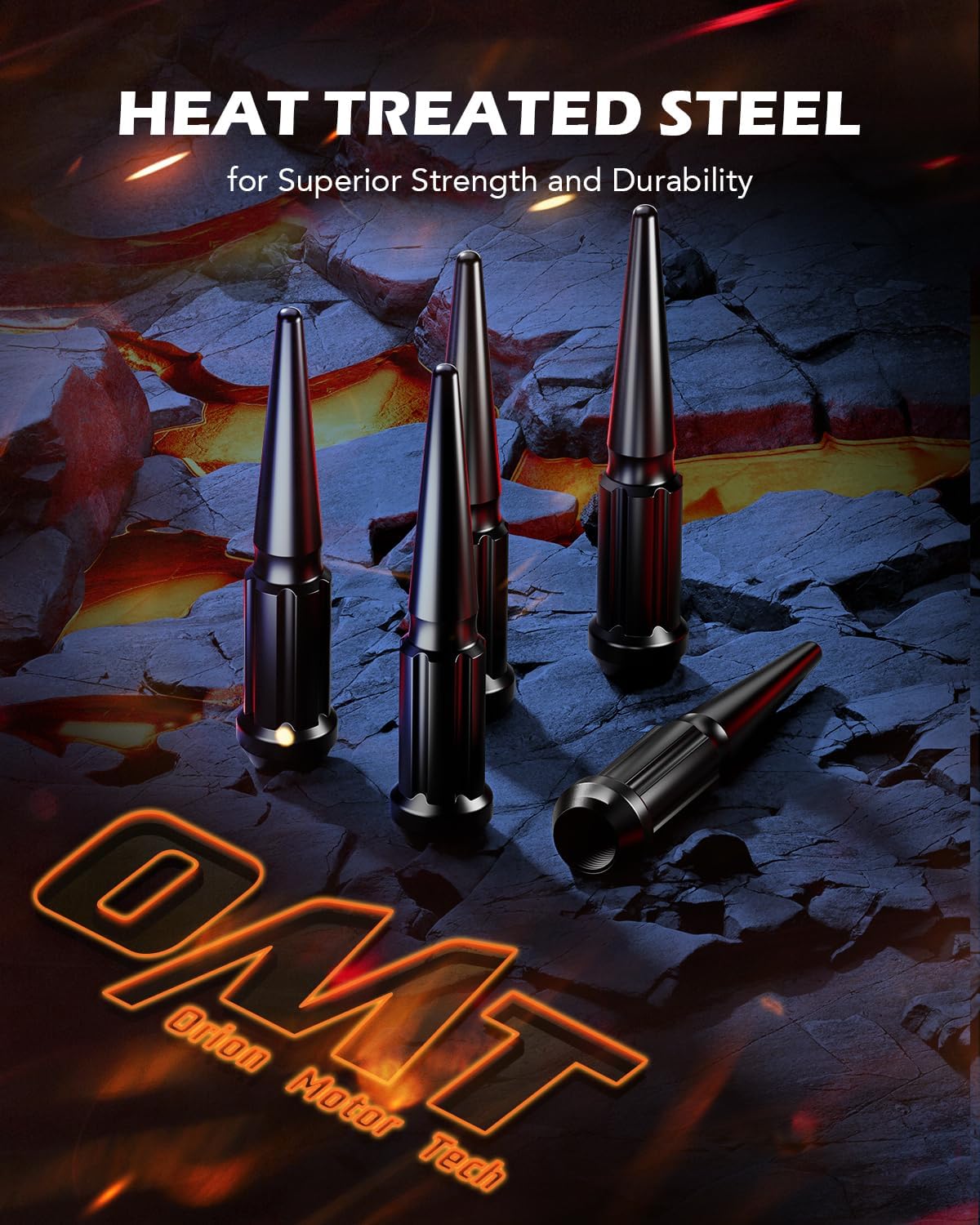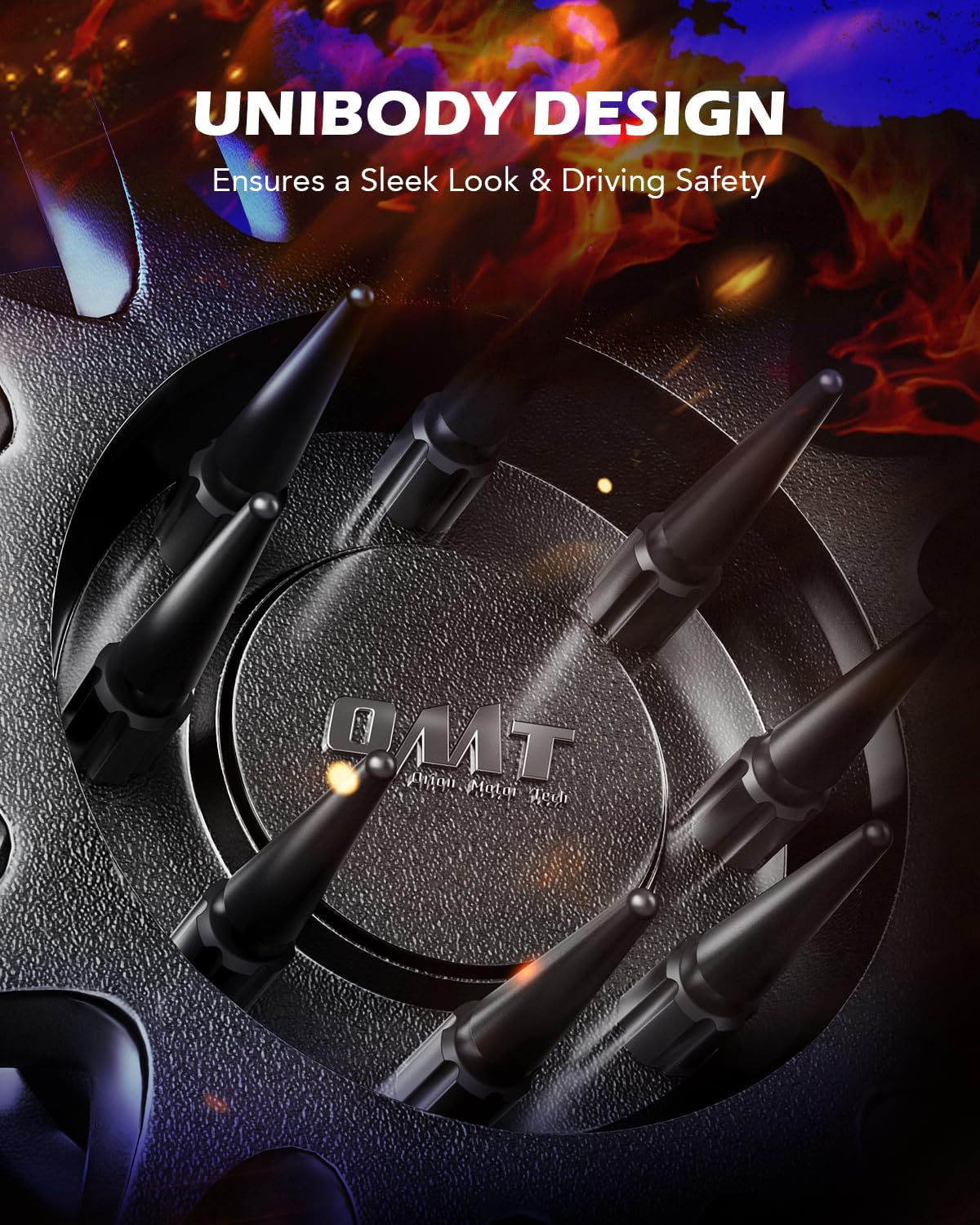 14x1.5 Lug Nuts Black 32 Piece, M14x1.5 Spike Lug Nuts Wheel Accessories Compatible with Chevy Ram Ford GMC