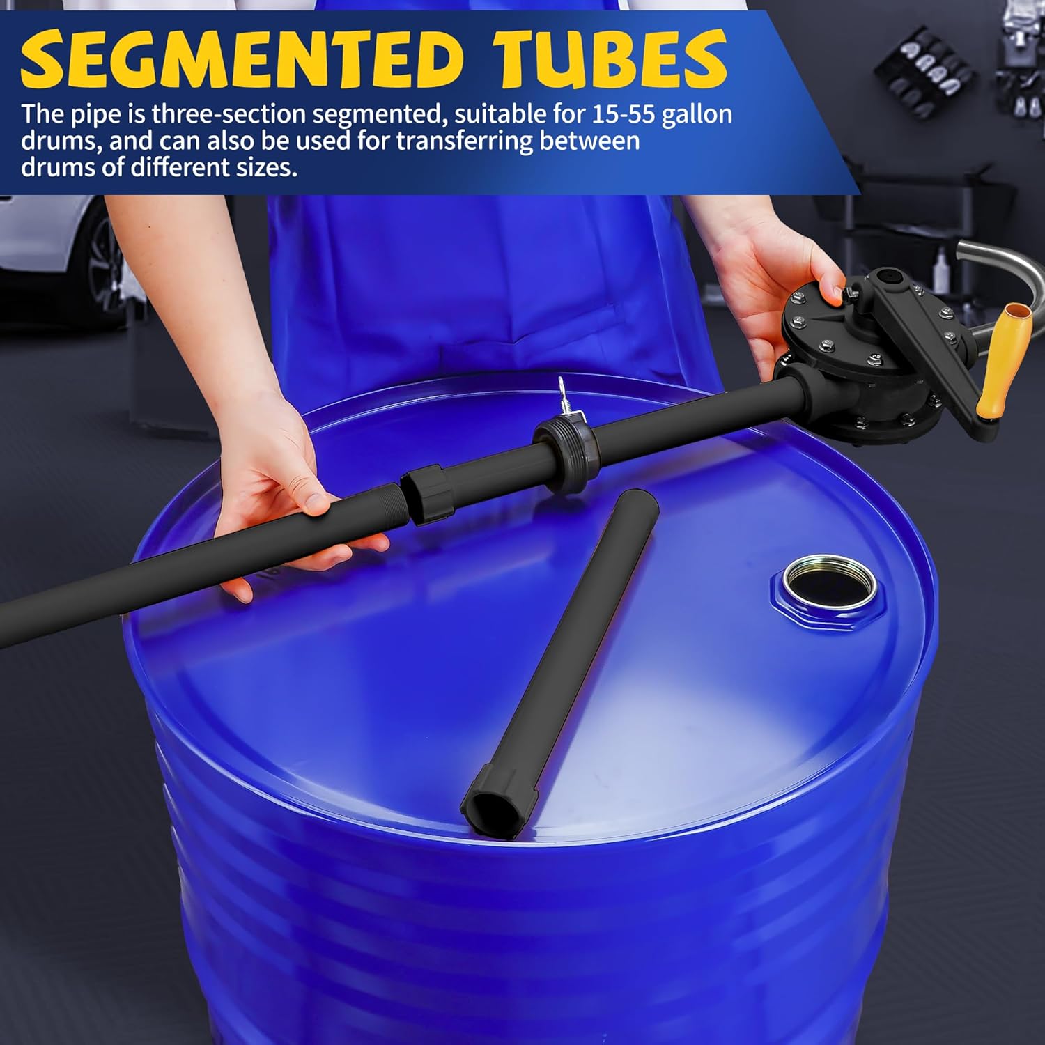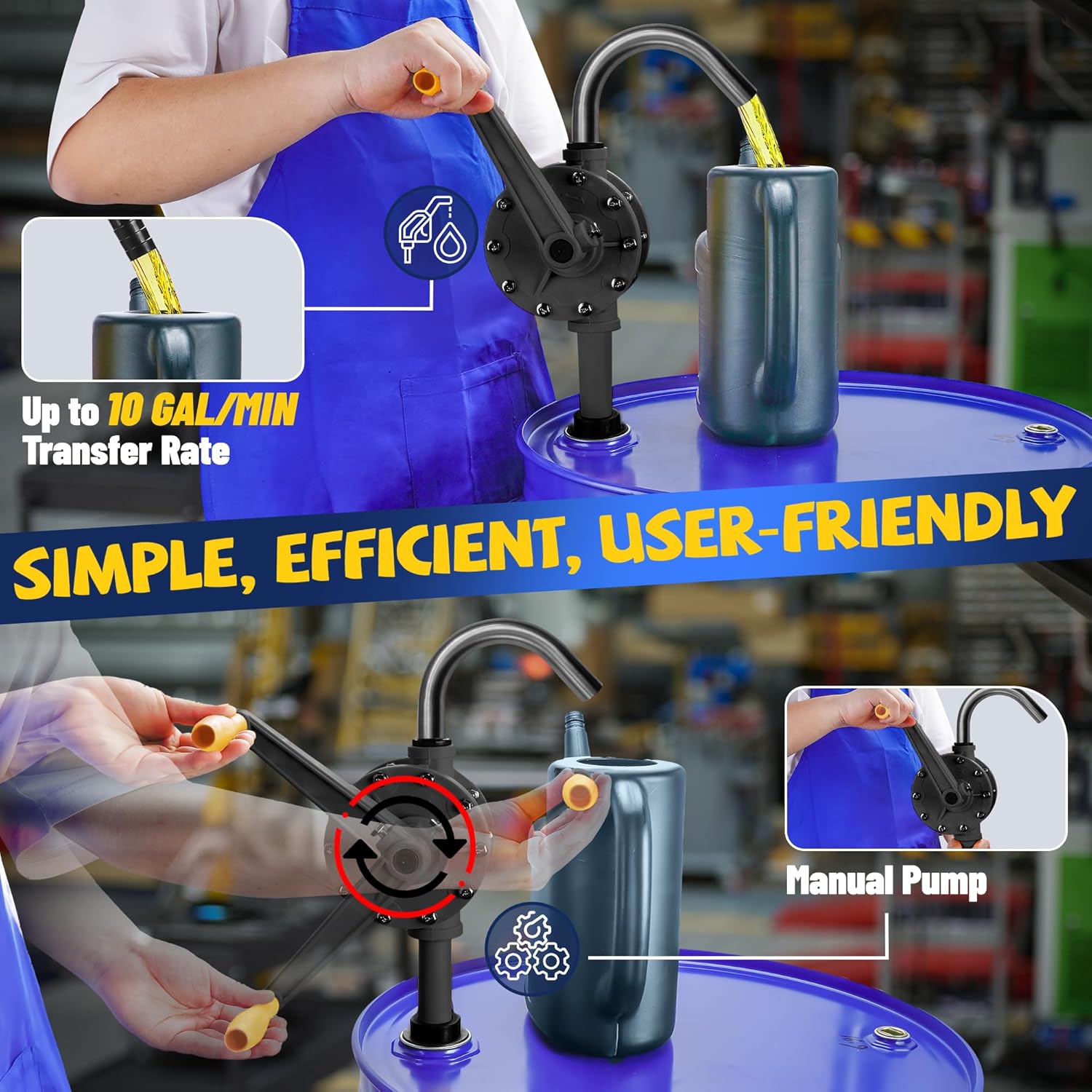 15-55 Gallon Drum Pump, 10 GPM Flow, Manual Rotary Barrel Pumps, Corrosion-Resistant Chemical Pump for Rapid Transfer of Water, Cleaners, Fuel, Corrosive Chemicals, and More