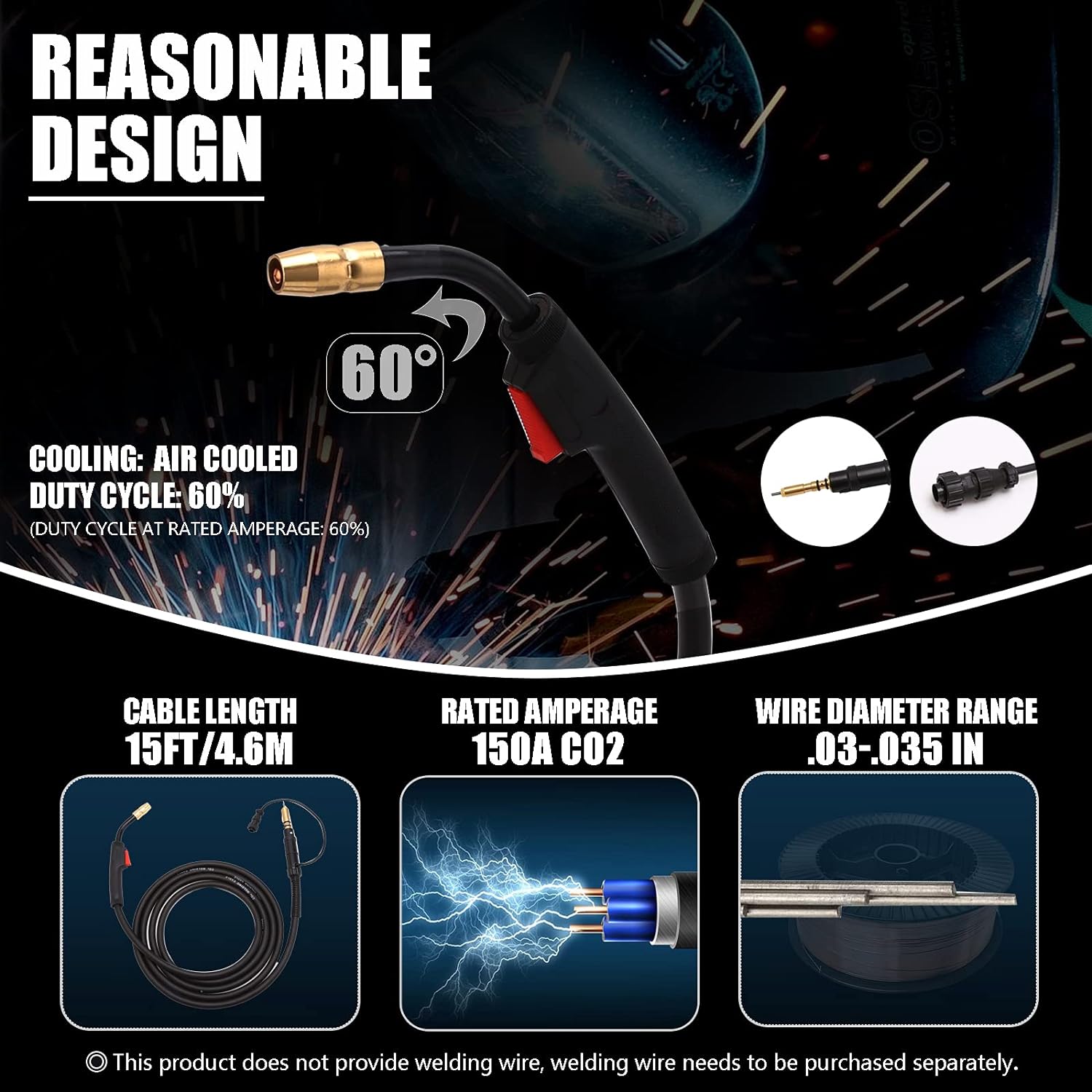 - Duty Cycle: 100% with CO2 Gas, 60% with Mixed Gas