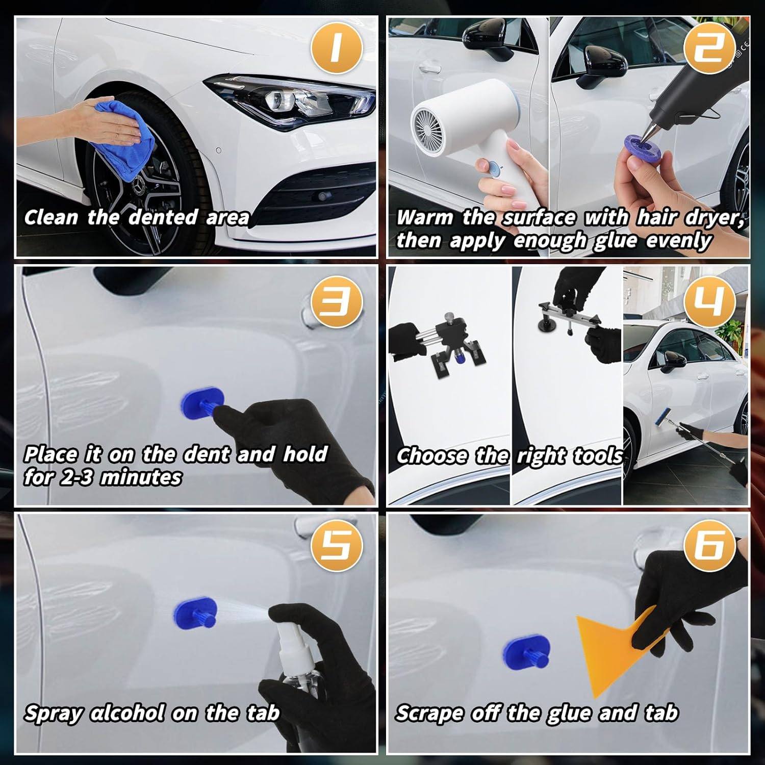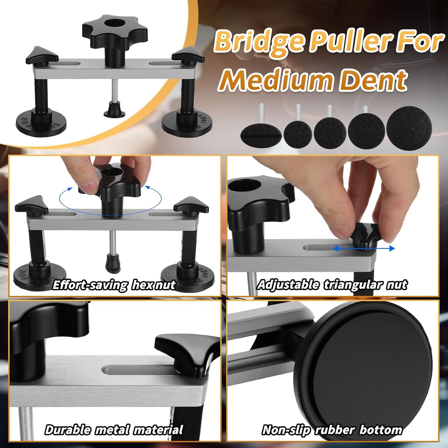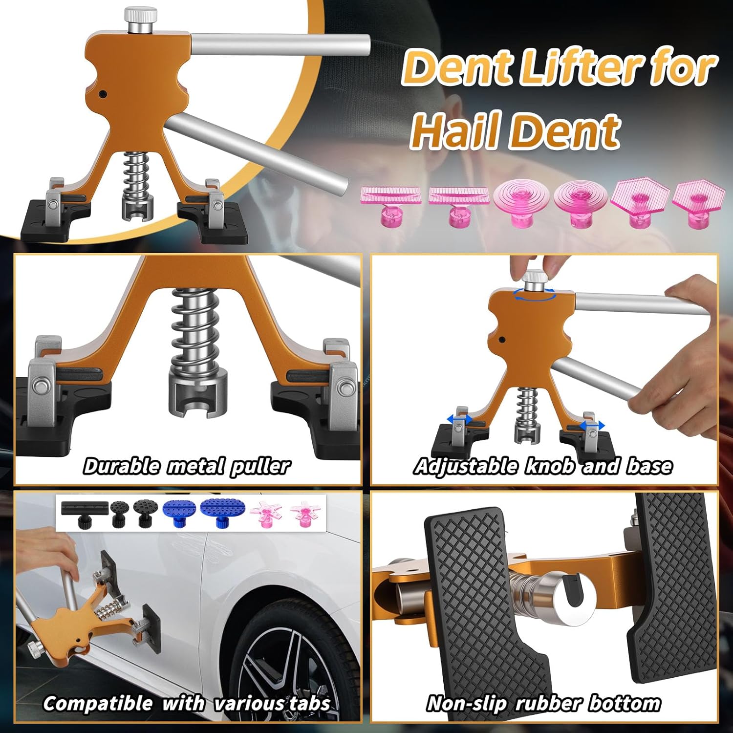 161Pcs Car Dent Puller Kit, Body Repair Tools Paintless Dent Removal Tool with Adjustable Dent Lifter & Bridge Puller, Hail Damage Repair Kit for Car Refrigerator Door Ding - Gold