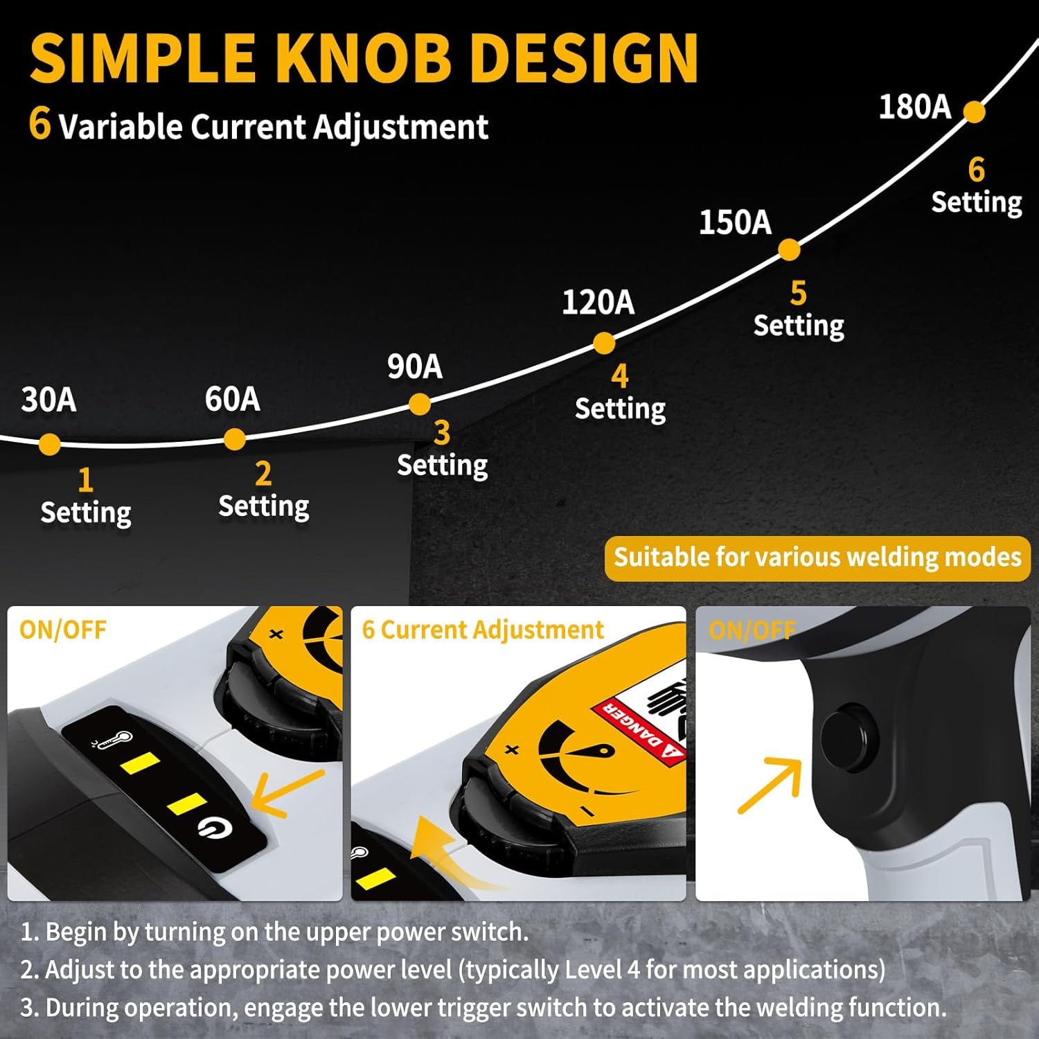 180A Handheld Portable Welder Machine, 110V Small ARC Welders Soldadora with 20PCS Rods & IGBT Inverter 5 Variable Current Adjustment, Small Maquina De Soldar Portatil Gun for 3/32" Wire Rods