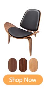 1inchome Mid Century Modern Shell Lounge Chair, Full Grain Leather, Scandinavian Furniture Tripod Plywood Classic Design Solid Wood Accent Chairs for Living Room, Reading, Lounge, Office, Salon