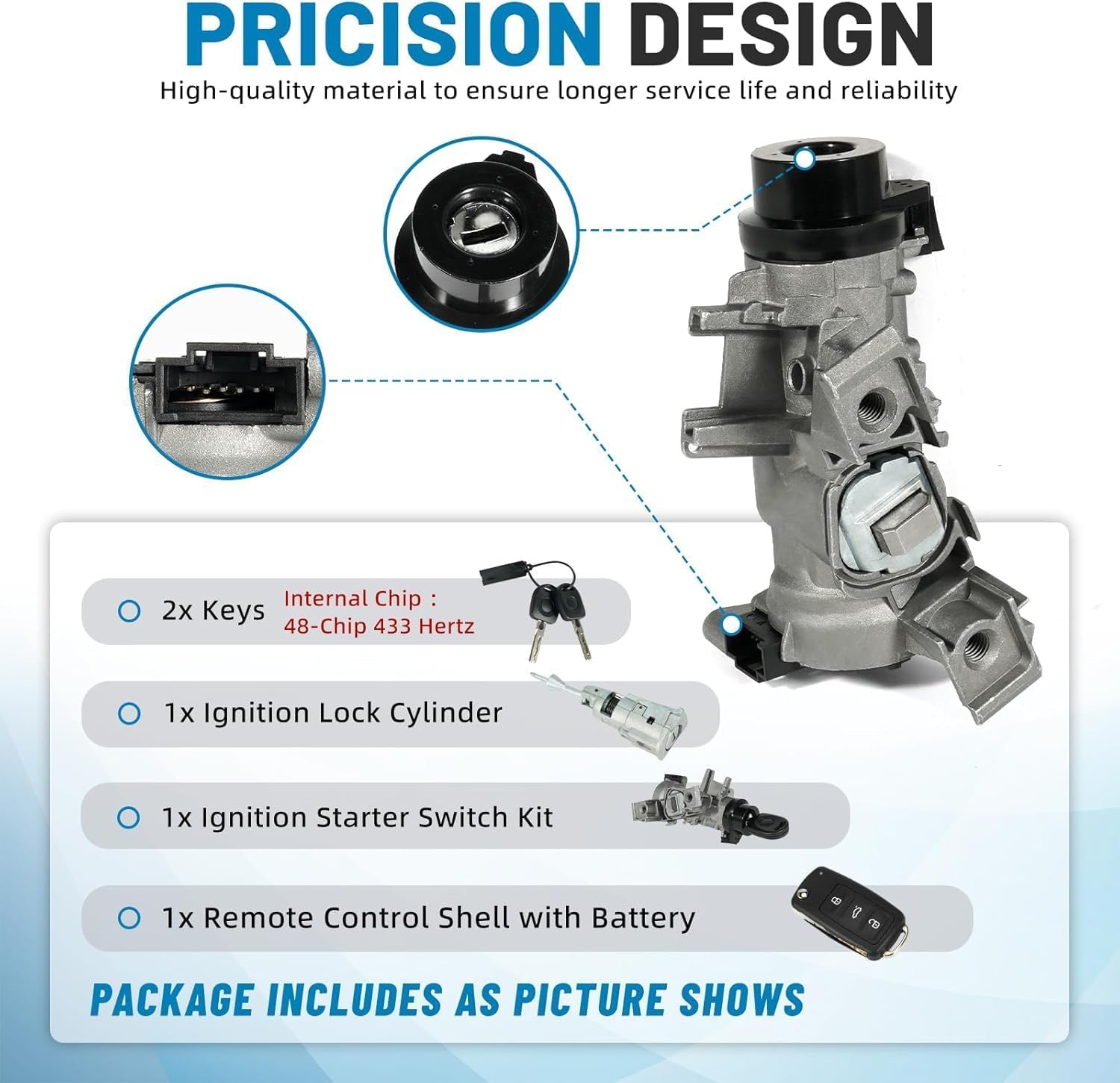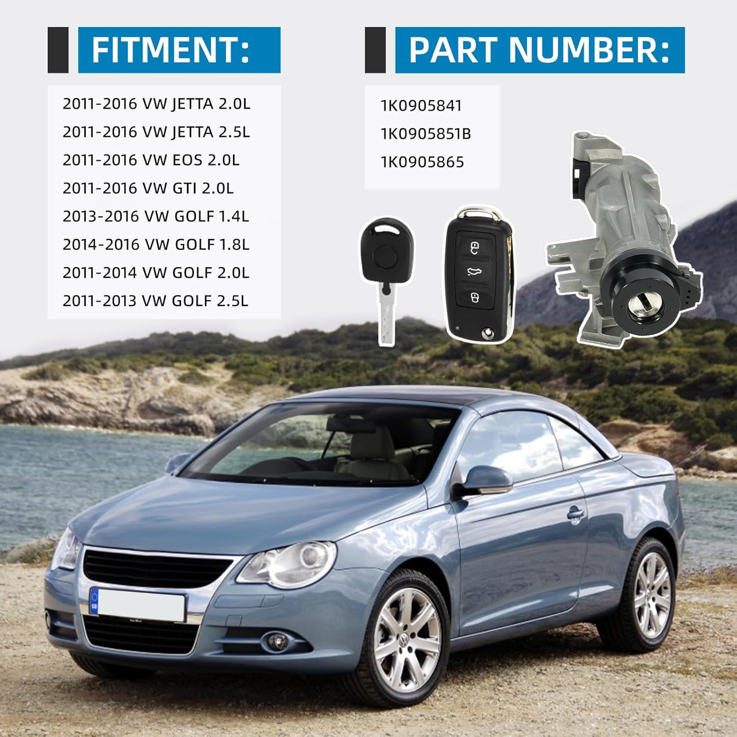 1K0905841 Ignition Lock Cylinder with Keys(48-Chip 433 Frequency),Compatible with 2011-2016 VW Jetta EOS GTI GOLF 2.0L 2.5L,Replacement 1K0905851B,1K0905865