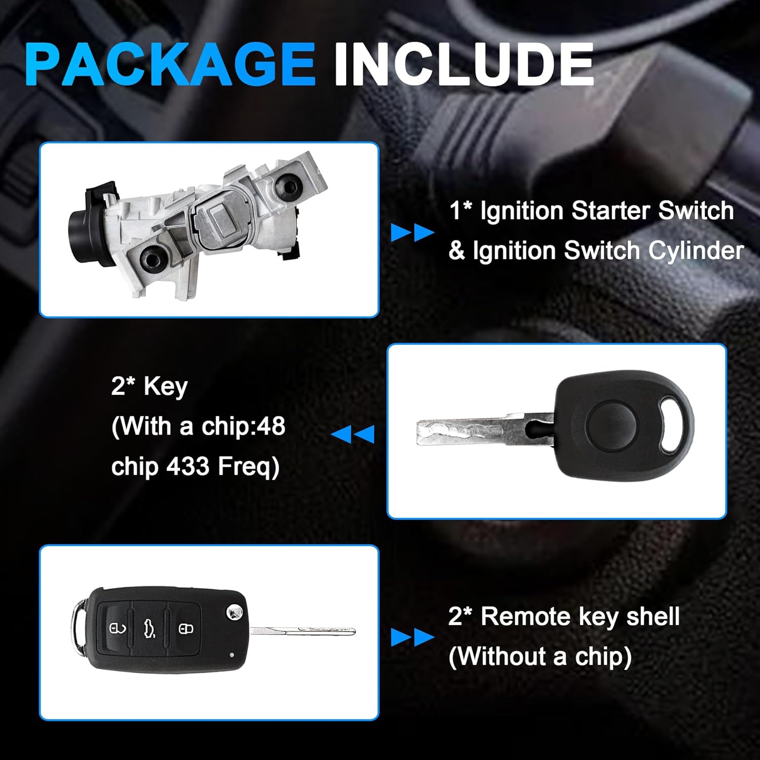 1K0905851B Ignition Switch Lock Cylinder with Intelligent Key Fit for 2006-2018 VW Jetta,for 2004-2011 Golf,for 2007-2011 Eos,for 2006-2009 Rabbit Replace 1K0905841 1K0905865 Ignition Starter Switch