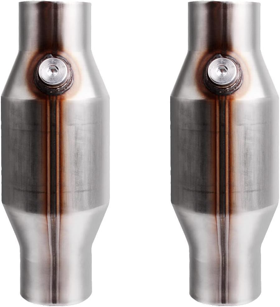 2.5 Inch Inlet Outlet Catalytic Converter Universal High Flow Front Catalytic Converter Direct Replacement with O2 Port (EPA Compliant), Stainless Steel, 2 Pcs