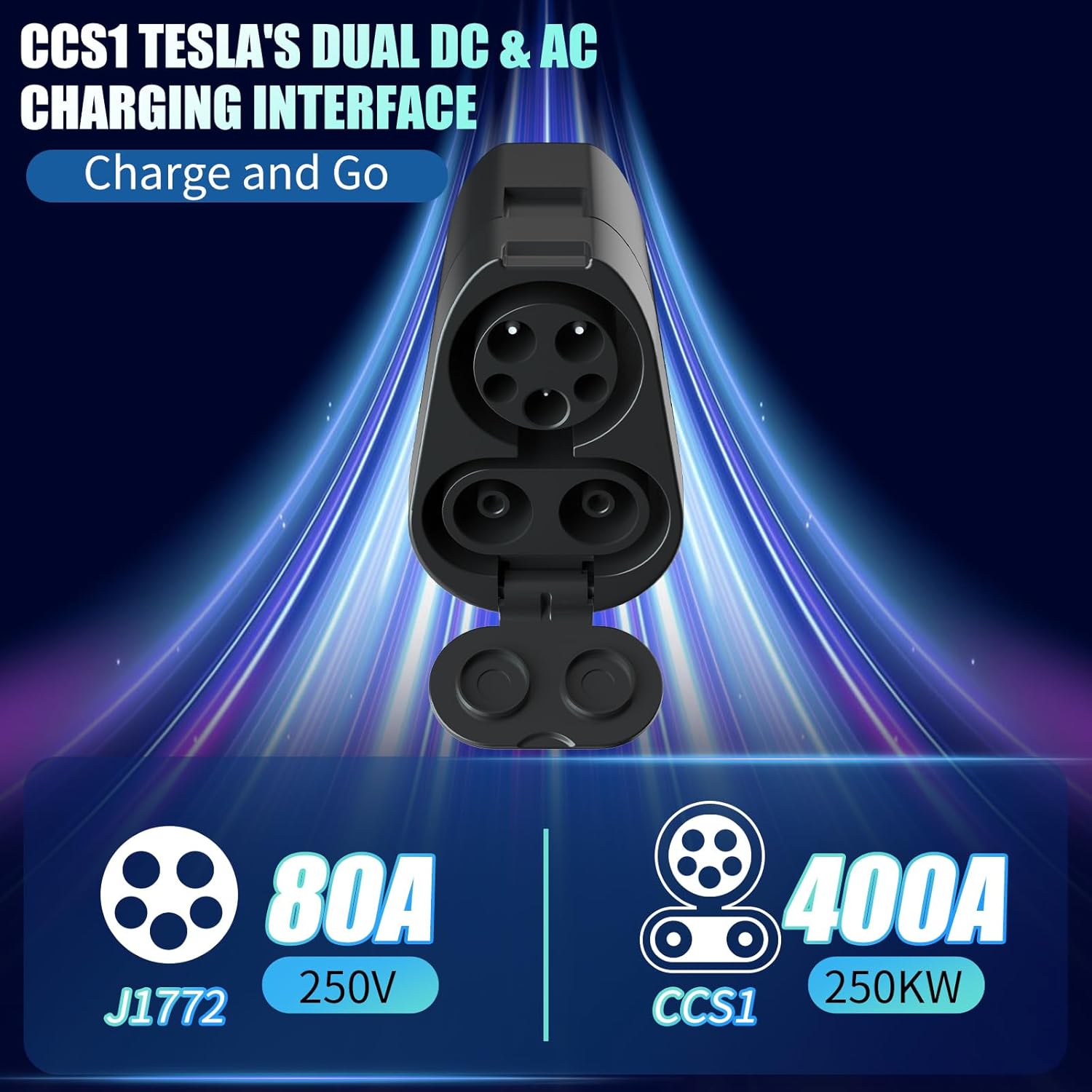 2 in 1 CCS & J1772 to Tesla Adapter,250KW CCS1 to NACS SuperFast Charging for Tesla Model 3, Y, S, X and Cybertruck,Compatible with Level 1 2 3 Charging Stations