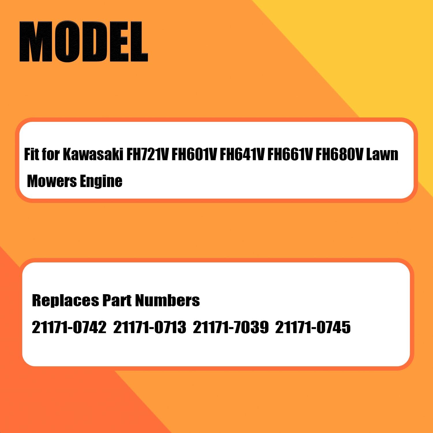 Model:Fit for Kawasaki FH721V FH601V FH641V FH661V FH680V Lawn Mowers Engine Replaces Part Numbers 21171-0742 21171-0713 21171-7039 21171-0745 Pakage Includes: 2xIgnition Coils Module 1xStarter Solenoid Relay 2xSpark Plug
