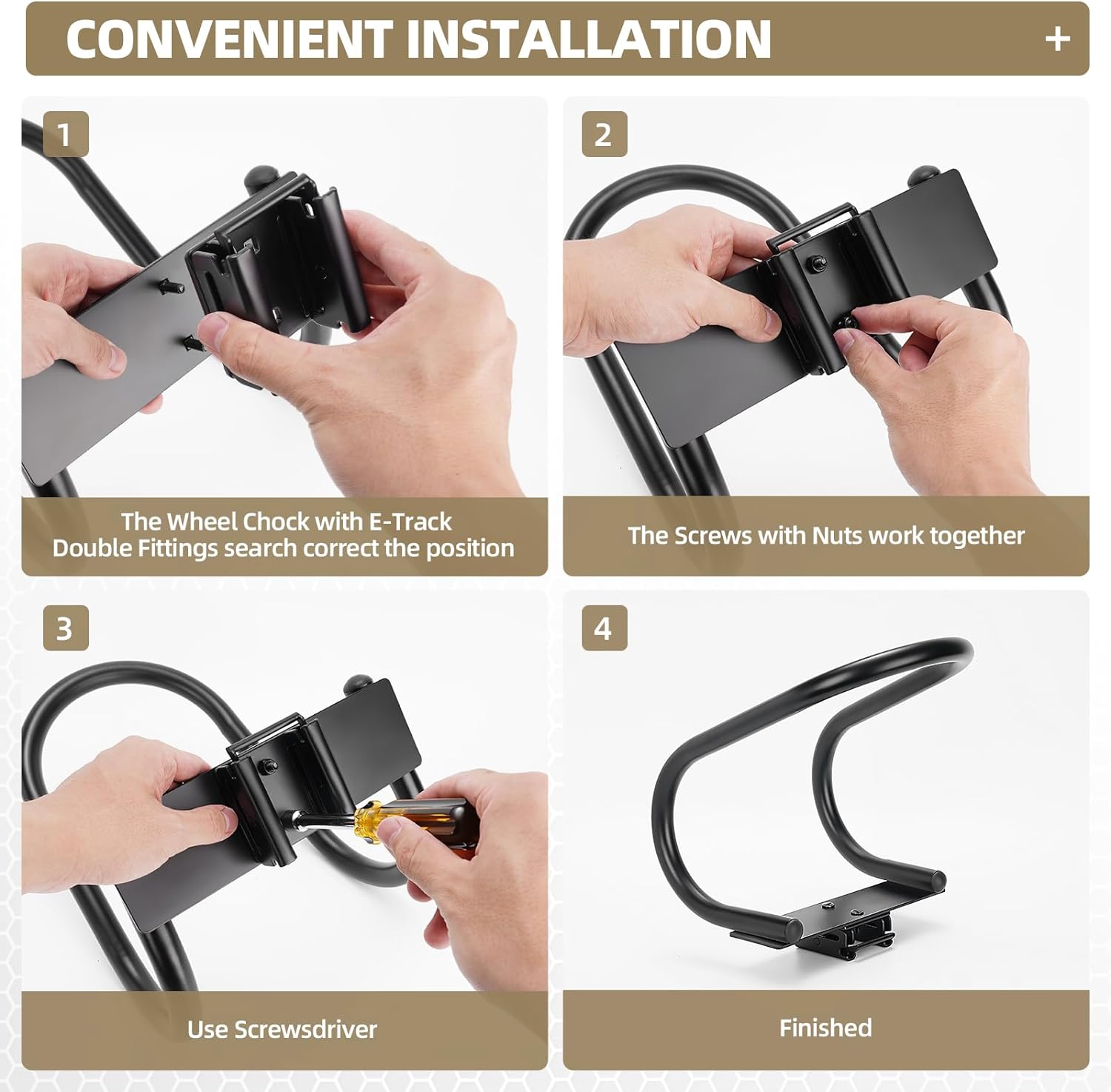 2 Pack E-Track Wheel Chock & Strap Kit|E Track Motorcycle Wheel Chock for Trailers for etrack system|E-Track Accessories for Enclosed Trailer- Supports Tire dirt bike, motorcycle for Garages and Trail