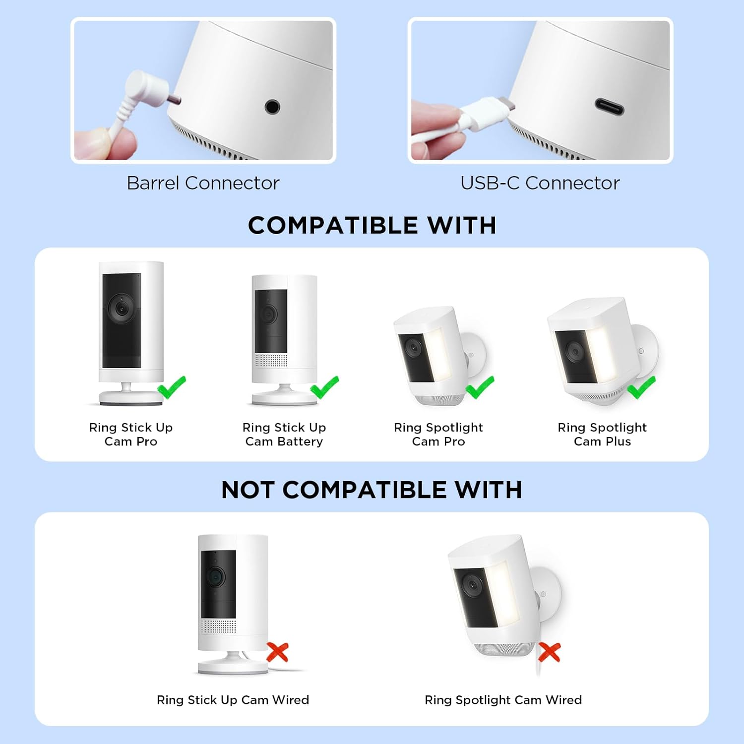 2 Pack - Solar Panel for Security Camera,6W Solar Charger for Ring Stick Up Cam Battery/Pro&Ring Spotlight Cam Battery/Plus/Pro,13FT Cable IP68 Waterproof USB-C and DC3.5mm Ports