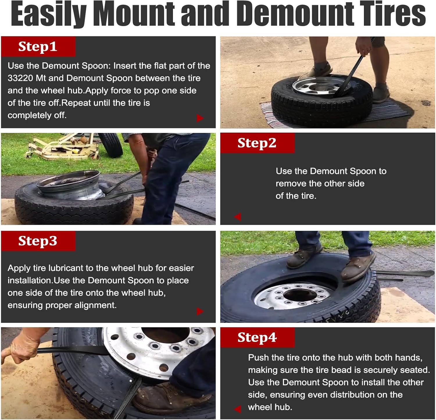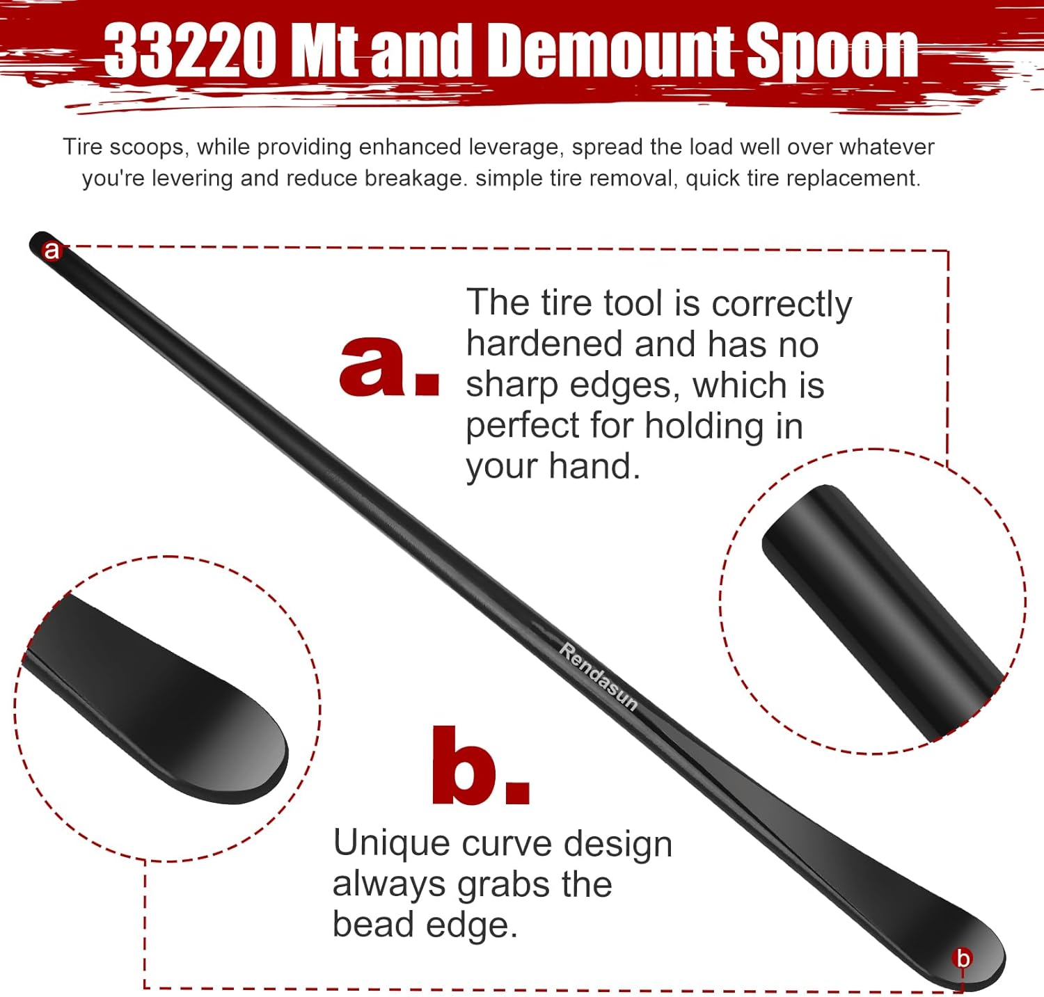 2 PCS Tire Bar, Tire Spoon, 33220 Mt and Demount Spoon, Tire Iron for Fast and Efficient Tire Removal and Installation, 30 in, 11/16 in
