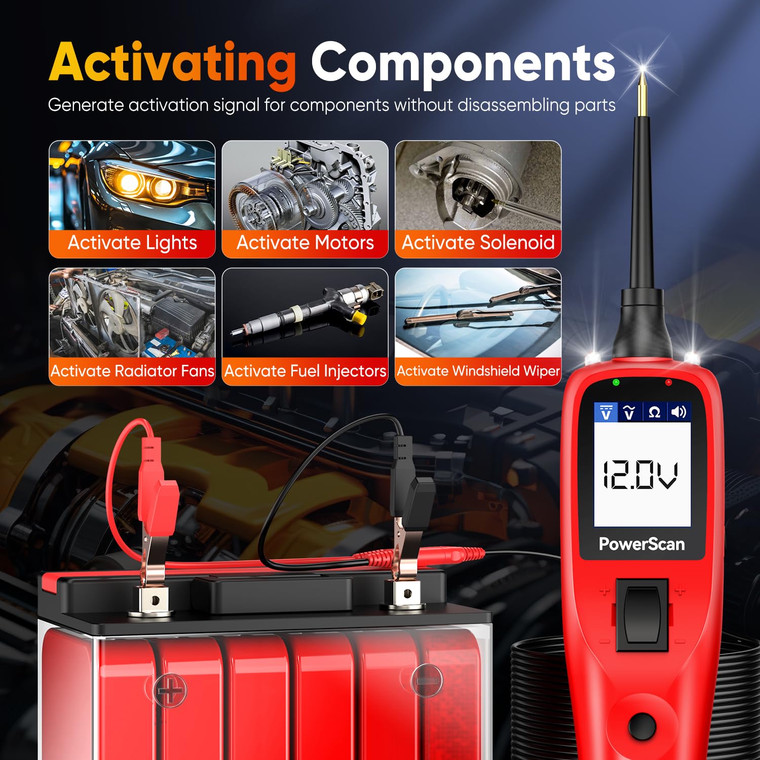 2025 Autel PowerScan PS100 Power Circuit Probe Kit, 12V 24V Automotive Electrical Wire Tracer Circuit Relay Tester, Open Breaker Short Find Tool, Read AC DC Resistance, Activate Component, 40ft Cable