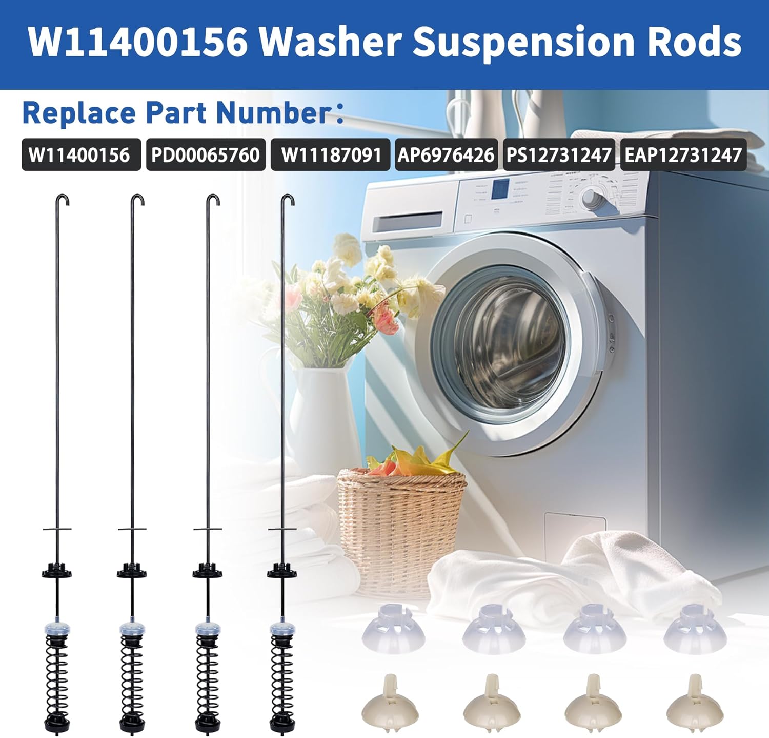 2025 Upgraded W11400156 W11187091 WTW7120HW0 MVW7230HW0 MVW7232HW0 WTW8127LC0 Washer Suspension Rods Kit for whirlpool kenmore and maytag Replace PD00065760、AP6976426、PS12731247、EAP12731247