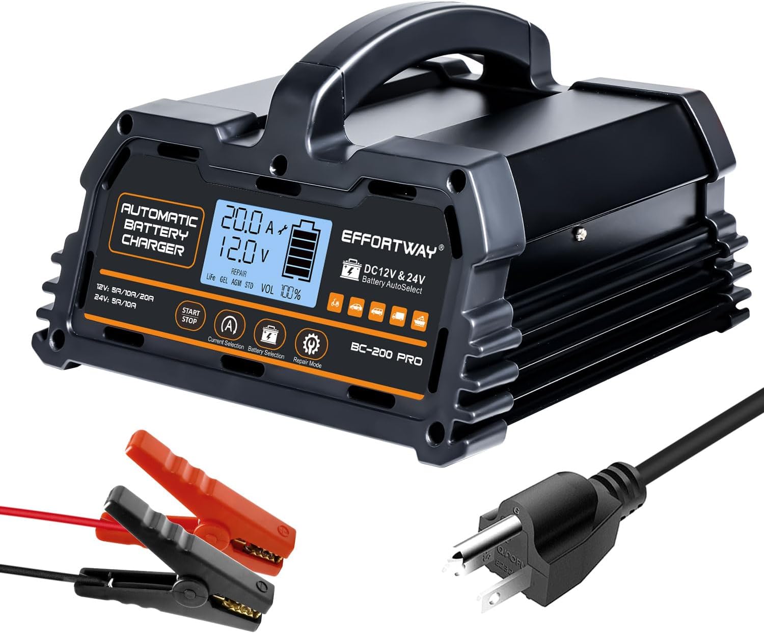 20A 12V/24V Battery Charger,Lead Acid Charger, 12V LiFePO4 Charger. Smart Battery Charger with Trickle Charge.Car Battery Maintainer with LCD Display. Suitable for Trucks,AMG,Motorcycles
