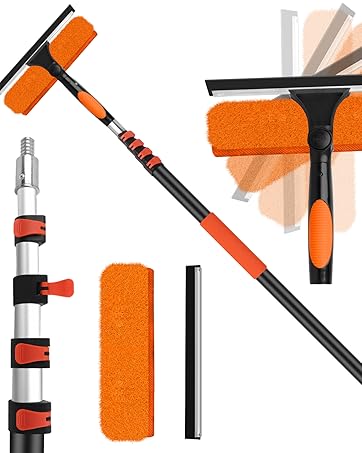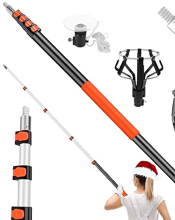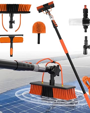 20FT Water Fed Solar Panel Cleaner Brush and Pole,Solar Panel Cleaning Kit with Telescopic Pole & Cleaner Solution Dispenser,180°Rotatable Solar Cleaning Brush with Lightweight Pole for RV,Boat,Deck