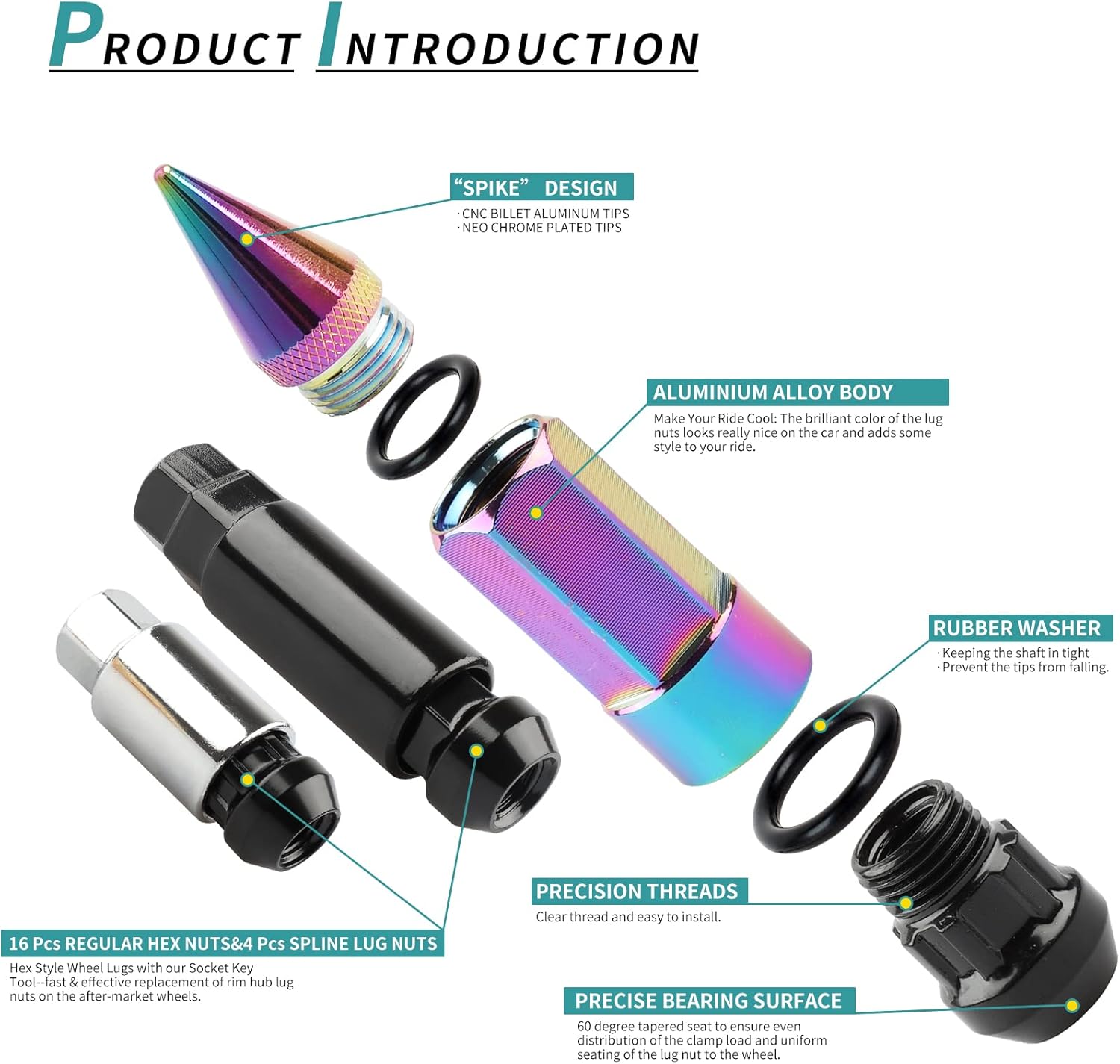 · 4 PCS eight- point spline nuts :Wheel locks comes with anti-theft,creates an additional layer of security.