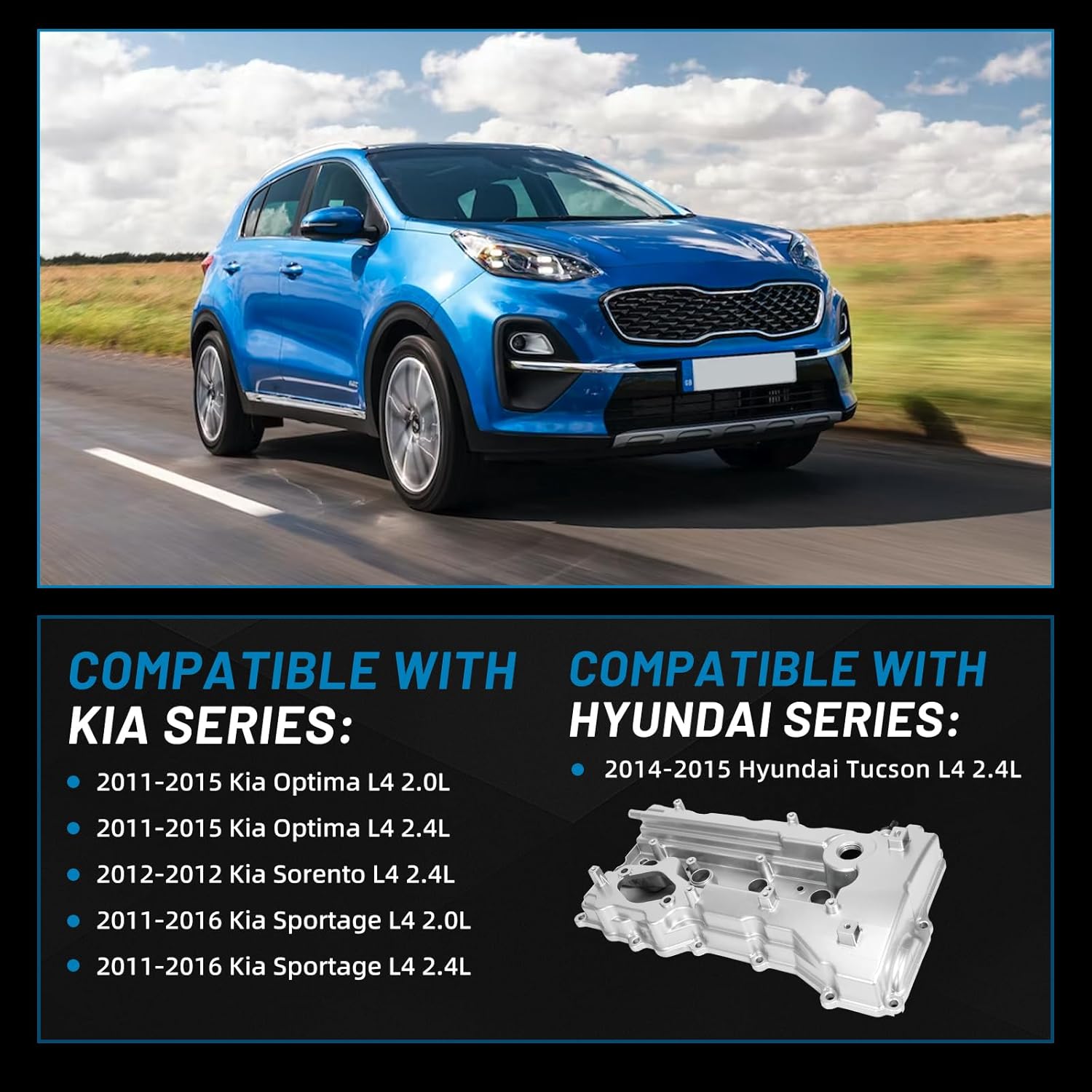 22410-2G710 Aluminium Engine Valve Cover Compatible with 2011-2016 Kia Optima Sorento Sportage,Hyundai Tucson