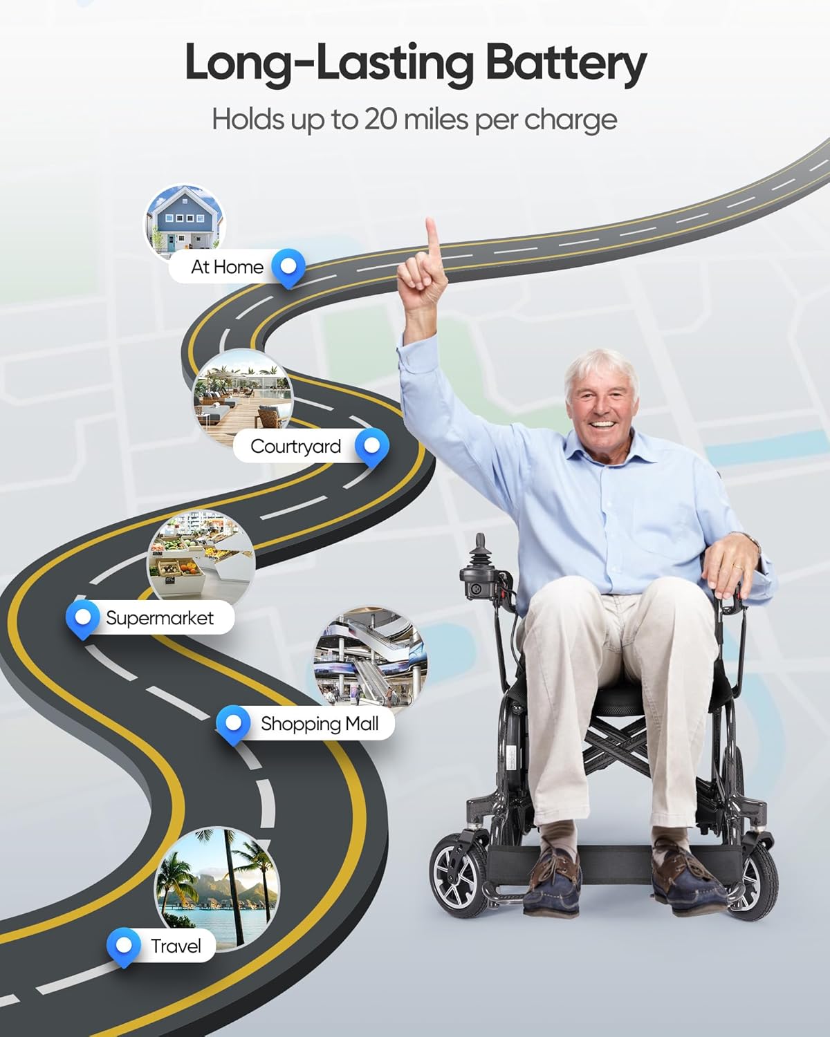 25.8lb Lightweight Carbon Fiber Electric Wheelchairs for Adults, Long Range All Terrain Portable Airline Approved