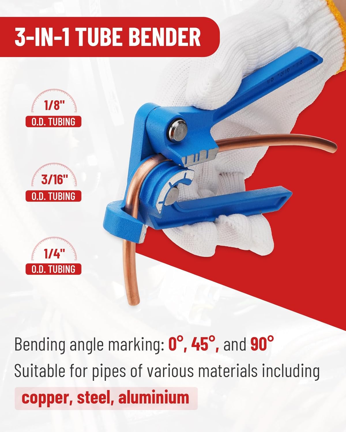 25 ft 3/16in &1/4in Copper Coated Brake Line Flaring Tool Kit, Includes 3-in-1 Tube Bender, Double & Single Flaring Tool Set, 4 Threads Unions, 40 Fittings