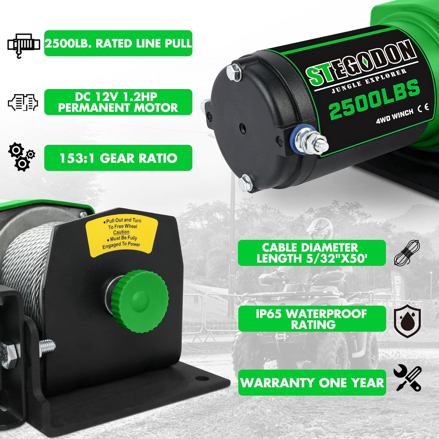 STEGODON 2500 lb. ATV/UTV Electric Winch-Steel Cable