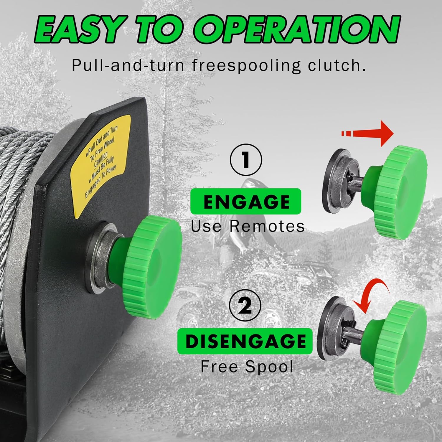 2500 lb. ATV/UTV Electric Winch, 12V Waterproof Steel Cable Winch,Electric Winch with Wired Remote and Wireless Remote for ATV UTV Towing,Boat,Off-Road