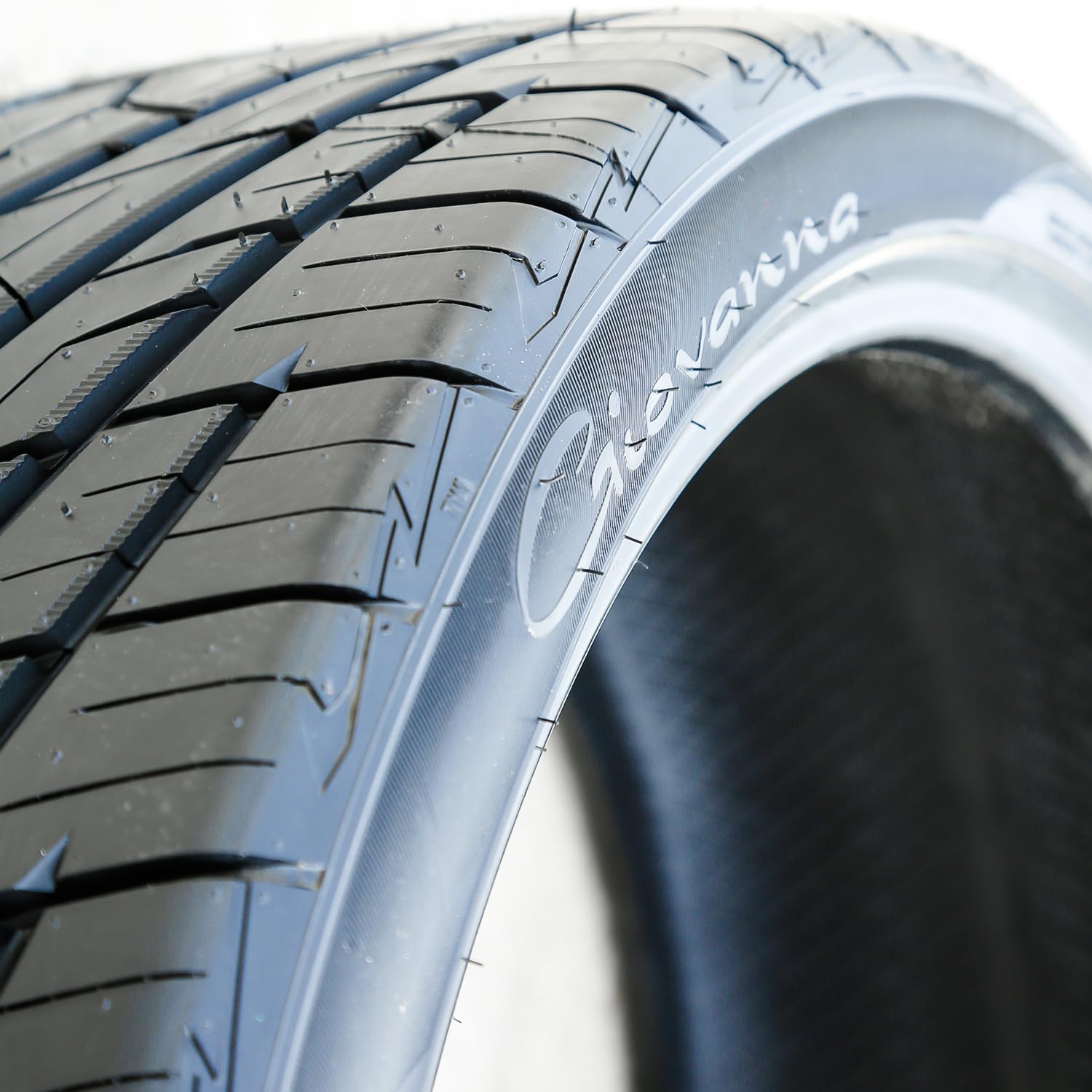 An all-season, ultra-high-performance tire, the Giovanna A/S features angled tread blocks that enhance traction and handling performance when driving at higher speeds. Large shoulders put more rubber on the road to boost cornering capabilities, and the A/S also features zigzag and angled grooves that drain water and slush out of the tread to reduce the risk of hydroplaning on wet and slippery roads.