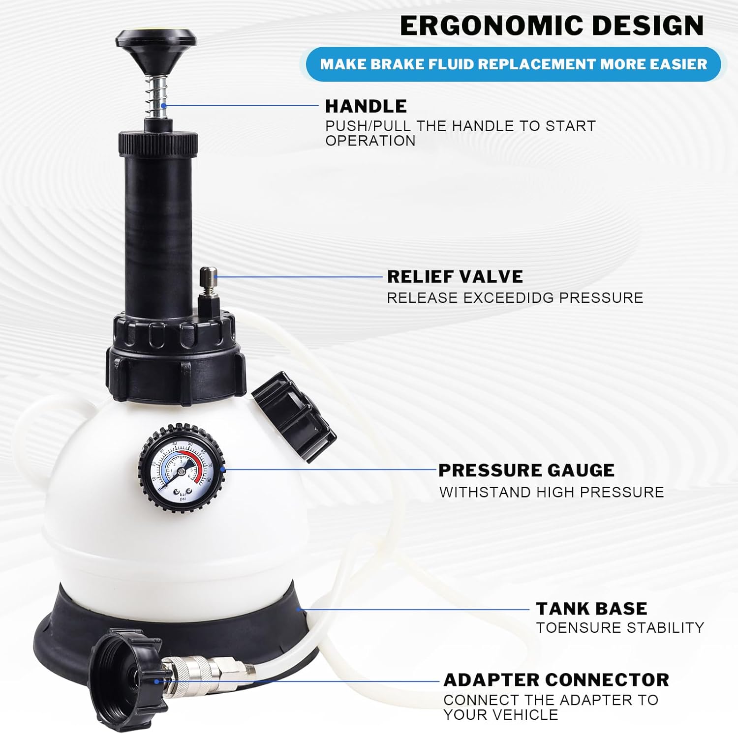 2L Manual Brake Bleeder Kit,Pressure Brake Bleeder Pump with 1L Brake Bleeder Bottle for Most Vehicles