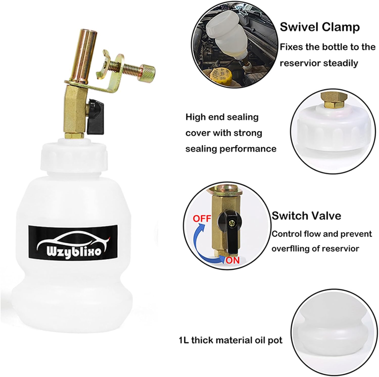 Wzyblixo One Person 1L Brake Bleeder Bottle, Brake Fluid Bleeder Kit, with 24 inch Latex Tube and Universal Adapter.